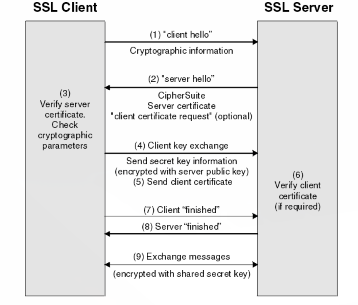 SSL이 동작하는 방식은 Handshake -> Session -> Session end의 과정을 거칩니다.