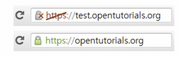 인증 안된 ssl 인증서를 사용하면 위 이미지처럼 x 표시가 뜹니다. 가끔 특정 웹페이지에 접근할 때 인증되지 않은 사이트이라느니 위험할 수 있다느니, 분명 https 사이트인데도 뜨는 곳은 위와 같은 이유입니다. 브라우저가 해당 인증서를 배포한 회사를 몰라서 인 거죠.