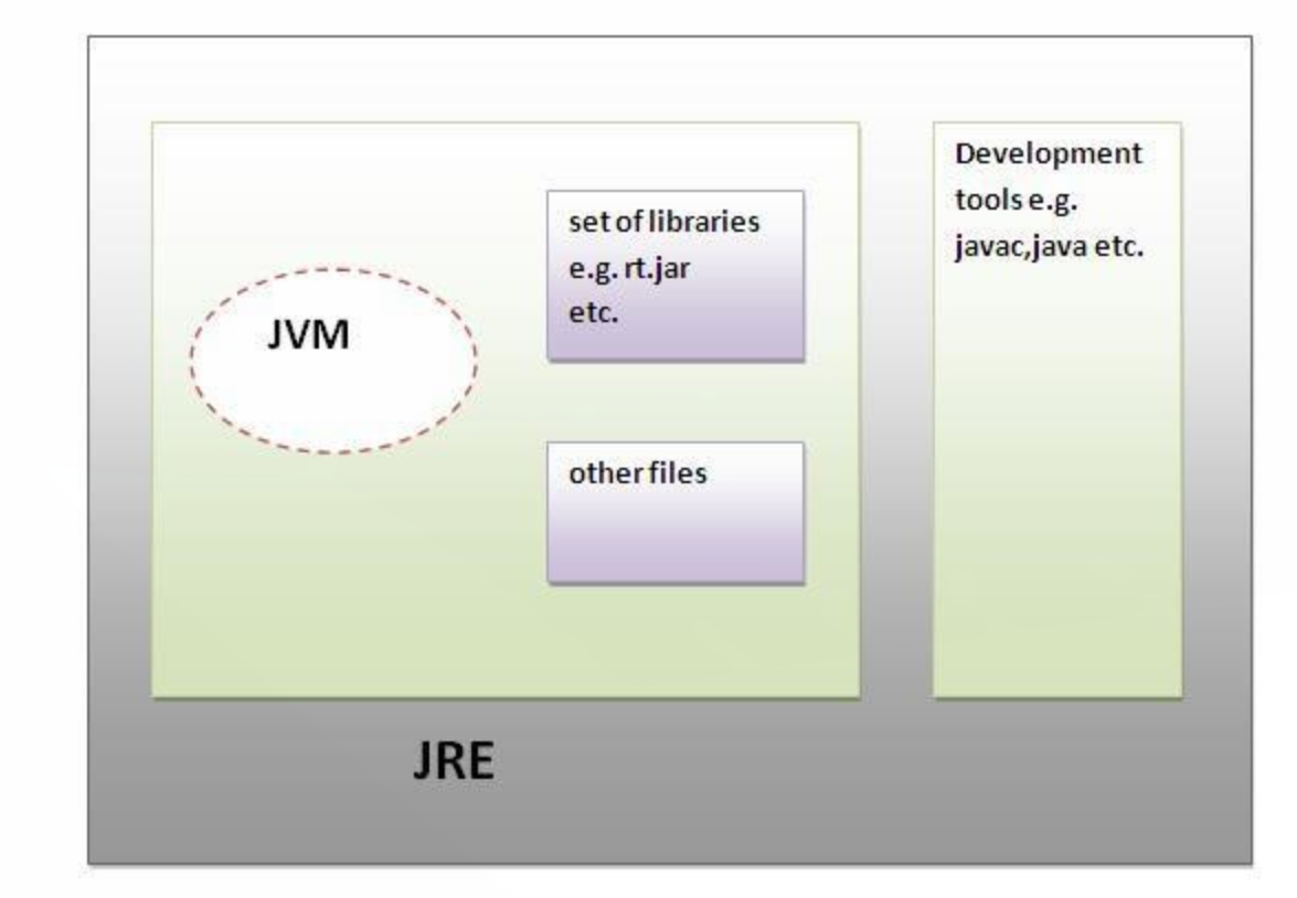 라이브러리 Java를 실행하기 위한 여러 파일들도 존재 할것입니다. JVM과 이러한 라이브러리나 파일들을 통틀어 JRE라 합니다. 즉, Java를 실행시키기 위한 환경인 것이고 JVM은 JRE의 일부라는 것이죠.