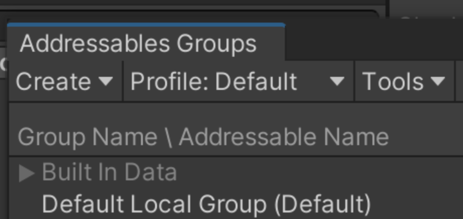 [Defalut Local Group]은 다른 임의 생성해서 사용하는 Group들과는 다르게, 기본으로 생성되어 있고 쉐이더 같은 기본 에셋들을 포함하는 그룹입니다. 이 그룹은 앱에 Built-in되어 나갑니다. 그렇기에 다음과 같은 구조에서 별도의 다운로드 없이 이용 가능합니다.