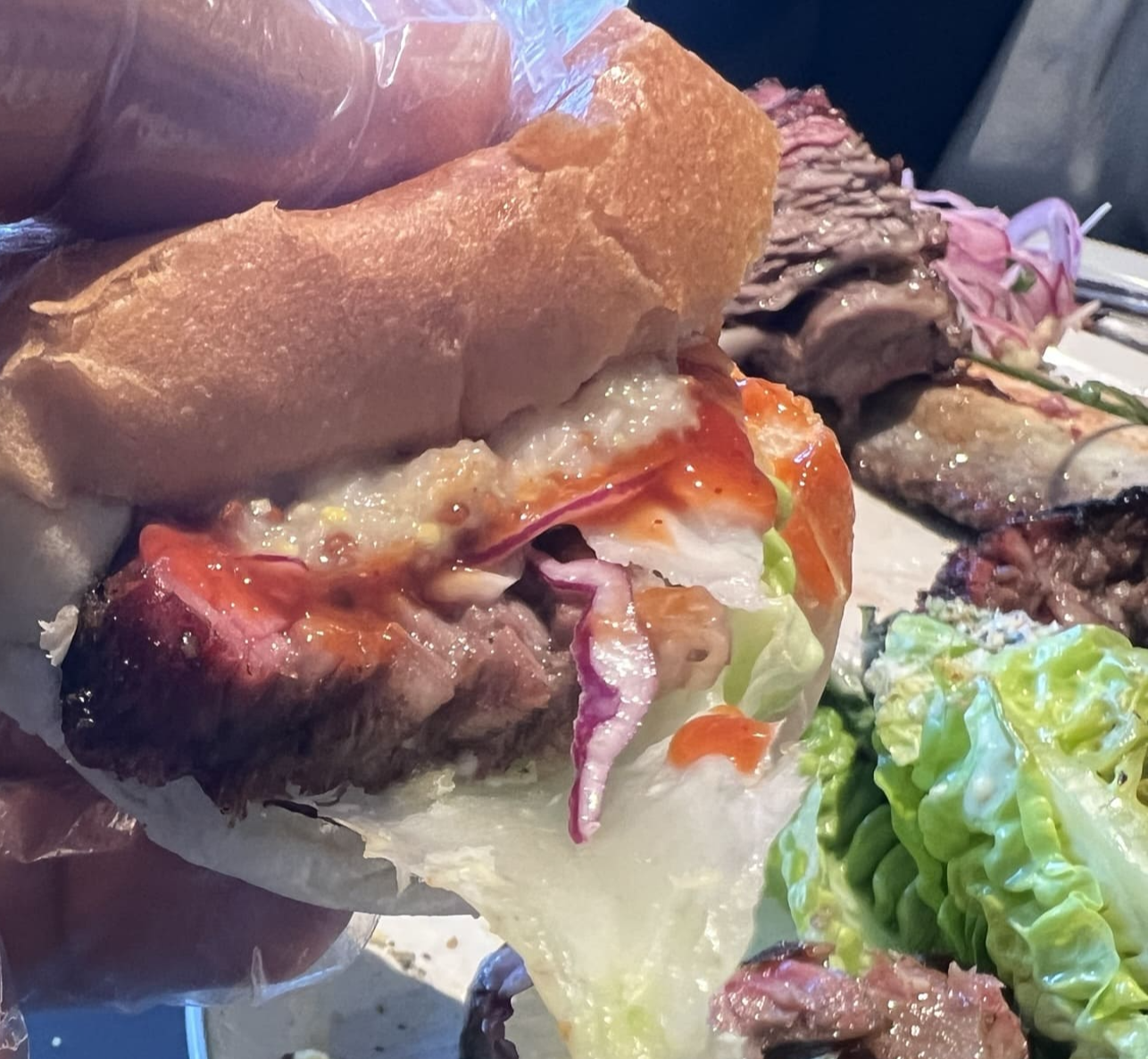 텍사스 바베큐는 함께 제공해 주는 미니 번에 햄버거처럼 만들어 먹는 게 즐기는 방식 중 하나라고 합니다. 함께 제공되는 샐러드와 로메인을 넣어 만들어서 먹어보았습니다. 고기만으로는 느낄 수 없는 다양한 식감과 맛을 더해주는 아주 좋은 방법이에요. 물릴 때쯤 한번 해서 먹으면 참 좋을 것 같네요.