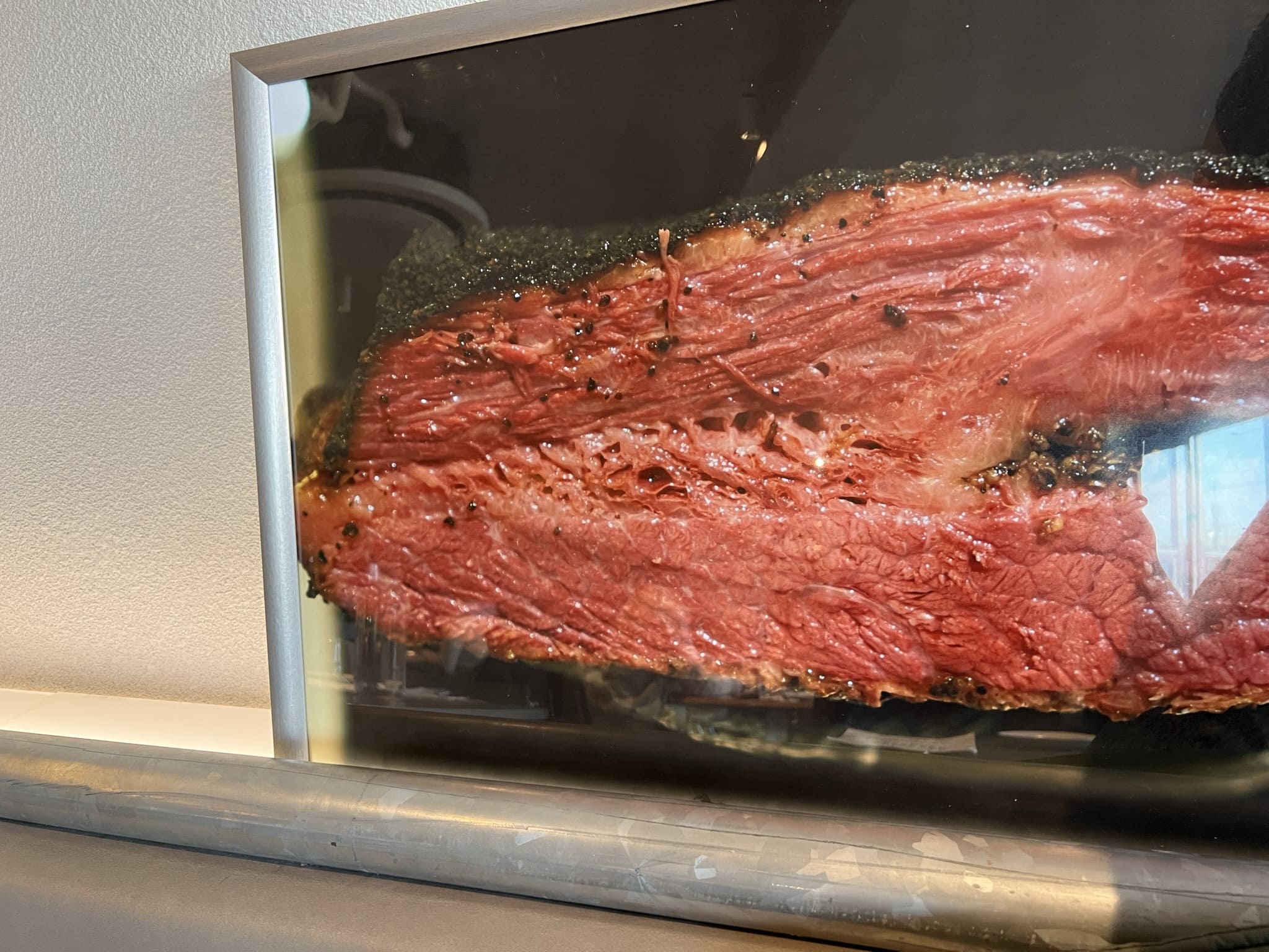 겉에 탄 것처럼 보이는 검은 부분은 탄게 아닙니다. 텍사스식 바베큐를 잘 알고 계신 분들에게는 익숙한 바크(Bark)라는 것입니다. 바베큐 하기 전 고기 겉면에 양념들을 묻혀줍니다. 이 양념을 럽이라고 하는데요. 오랜 시간 훈연하면서 이 럽이 뭍은 부분이 나무껍질처럼 변하는데에서 어원이 유래했다고 하네요. 저 바크 부분의 맛이 그 집의 노하우라고 합니다. 오히려 맛있고 좋은 부분이라는 거죠. 그저 포크로 집었을 뿐인데 분리되는 저 살결을 봐주세요. 역시 고기는 언제나 옳아요.
