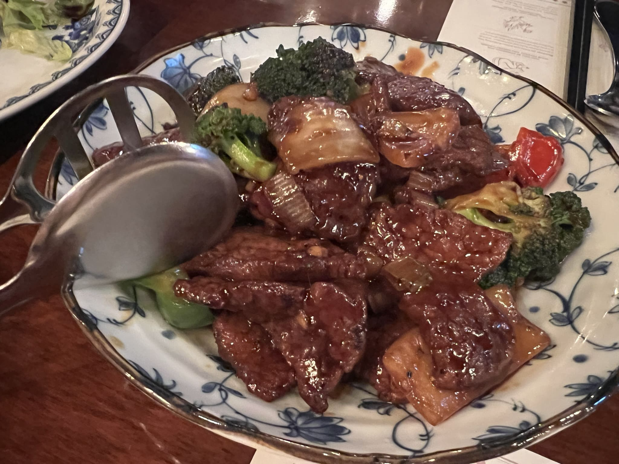 세트 메뉴중 첫 번째로 나온 요리는 몽골리안 비프입니다. 저희는 세트 B를 시켰는데, 몽골리안비프와 쓰촨비프 중 몽골리안 비프를 선택했습니다. 달콤 짭조름한 간장맛이 일품인 고기 볶음 요리였습니다. 은근히 양이 많아 3명 정도가 맛보며 먹기에는 충분한 양이었습니다.
