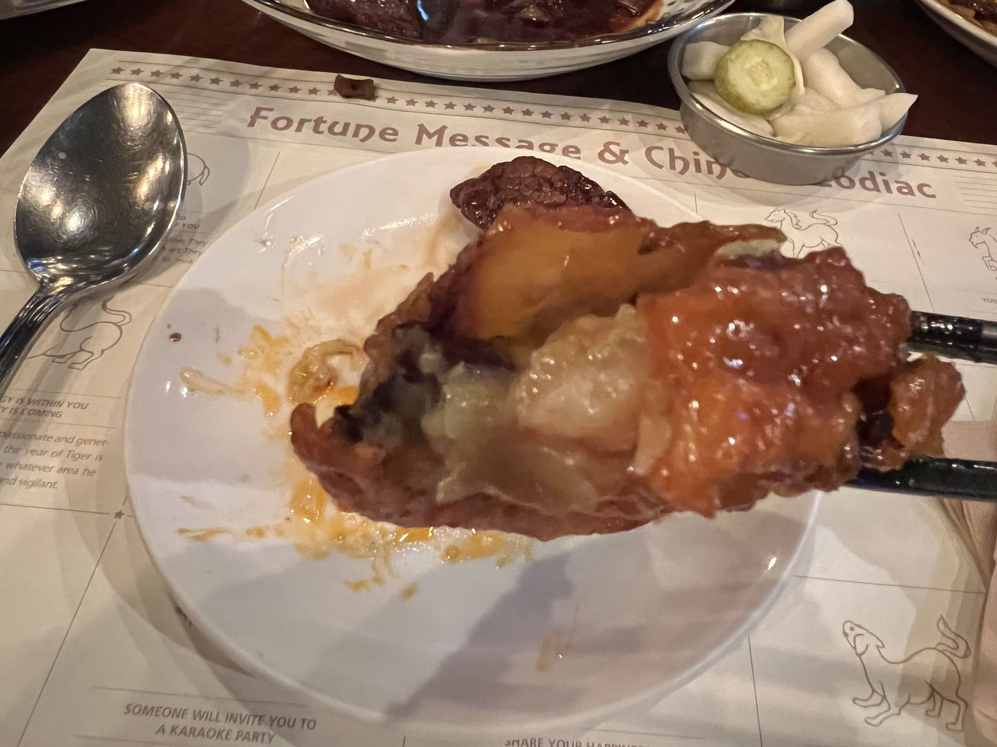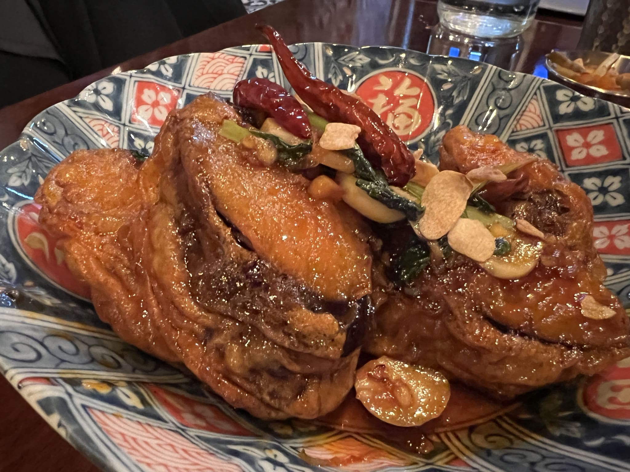 큼직한 가지의 속에 새우살을 채워넣고 튀긴 뒤 깐풍스타일로 소스와 버무려 볶은 음식인 깐풍마늘 가지새우입니다. 한입 베어 물면 가지의 식감과 새우의 통통한 식감이 잘 어우러져 입안을 즐겁게 해 줍니다. 오늘 먹은 구성중 제일 좋았던 메뉴입니다. B세트에선 6덩어리가 나오니 잘 나눠서 드시길...