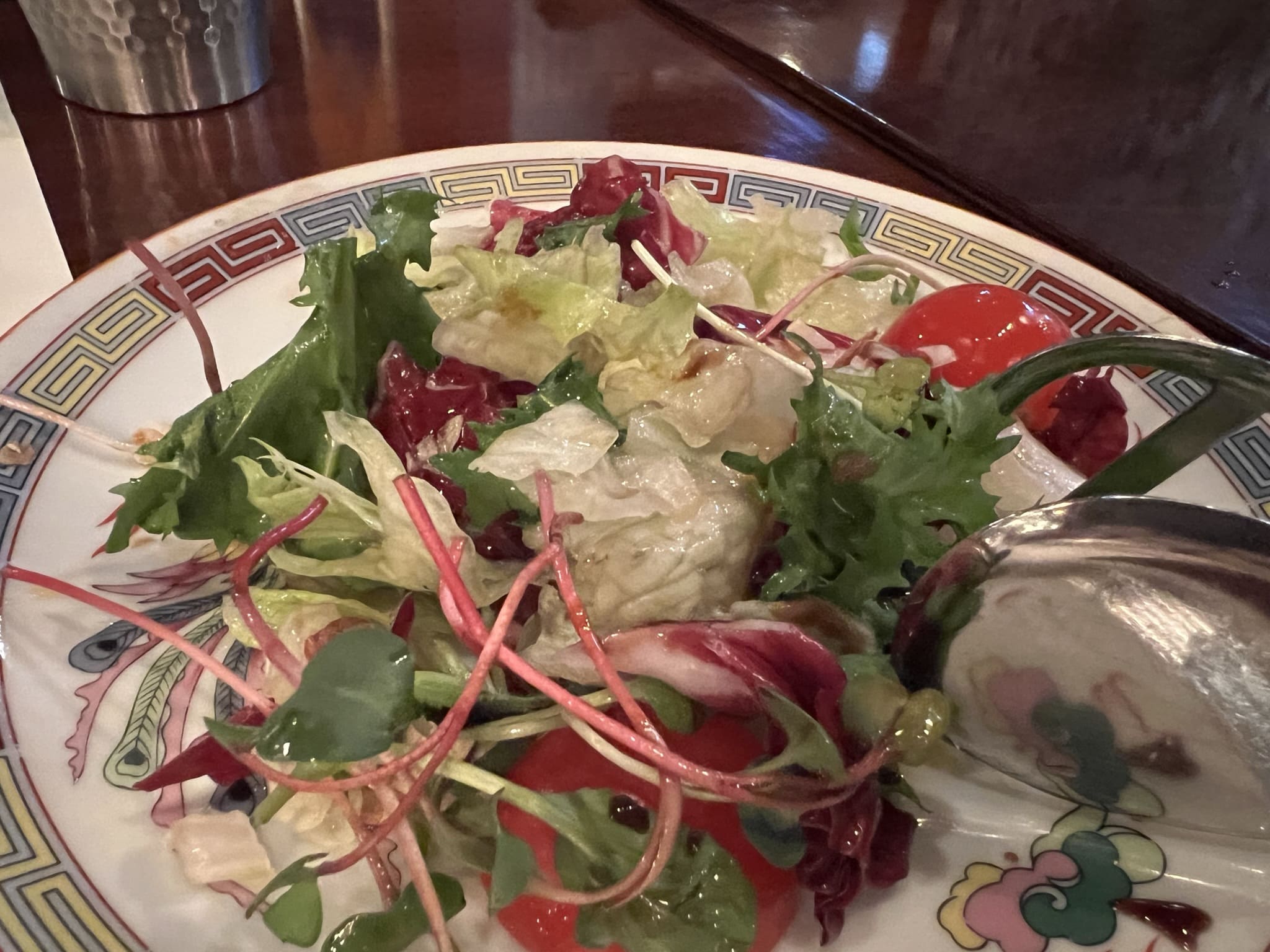 기름진 음식을 먹기전, 위에 준비운동을 가해주고 가끔 물릴 때 먹어줄 샐러드가 나왔습니다. 우선 간단하게 맛을 보고 새콤한 드레싱의 맛으로 입가심을 해주고 다음 요리를 기다립니다.