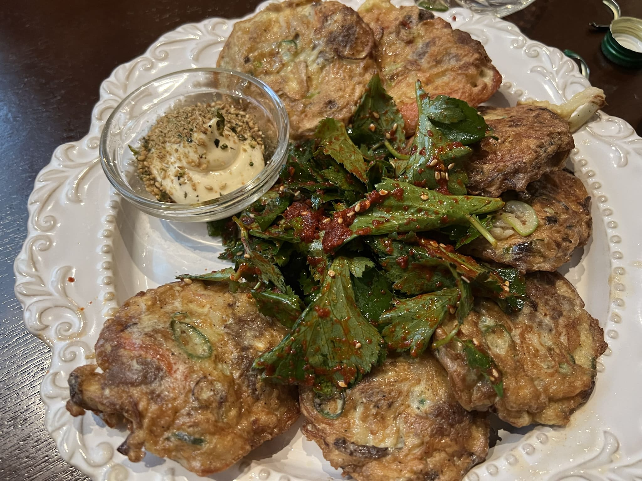 배는 불렀지만, 술도 좀 취해서 그런지 끈이 살짝 끊어져 시키게 된 쇠고기 동그랑땡입니다. 잘 안 익었다고 오해할지도 모르지만 잘 익은 촉촉한 속과 기름진 동그랑땡이었는데요. 같이 버무려 나온 겉절이랑 먹으면 기름진 맛을 잘 잡아주고 별미로 먹을 수 있습니다. 함께 나온 마요네즈 소스를 찍어먹었는데 느끼할 줄 알았는데 오히려 더 고소하고 맛있었습니다. 이렇게 취기가 달아오른 돼지런한 한 끼(사실 2차)를 마무리하게 되었습니다.