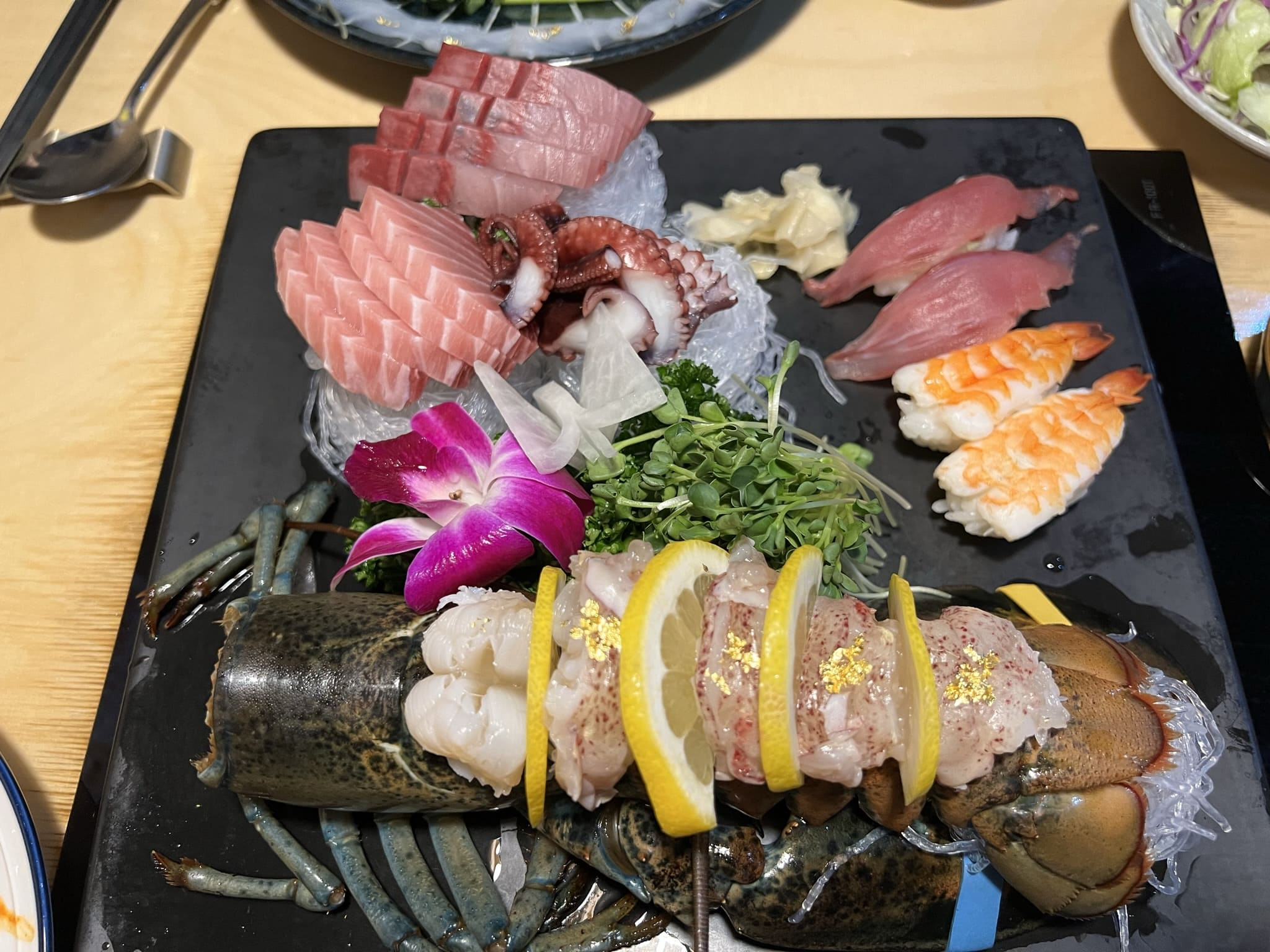 다시 돌아온 사시미 타입니다. 랍스터 생물을 회로 제공해주는데 역시나 금가루가 뿌려져 있네요. 탱글한 랍스터 속살이 회로 먹으니 익혀 먹을 때랑은 다른 매력이 느껴지네요. 이 맛 잘못들이면 버릇이 될 거 같아요. 너무 맛있었습니다. 참치회도 상태도 좋고 부드럽게 잘 먹었습니다. 문어숙회는 살짝 질긴 것도 싶었지만 씹다 보니 부드럽게 잘 넘어갔어요. 사실 이게 메인인가 싶을 정도로 구성이 알찼습니다.
