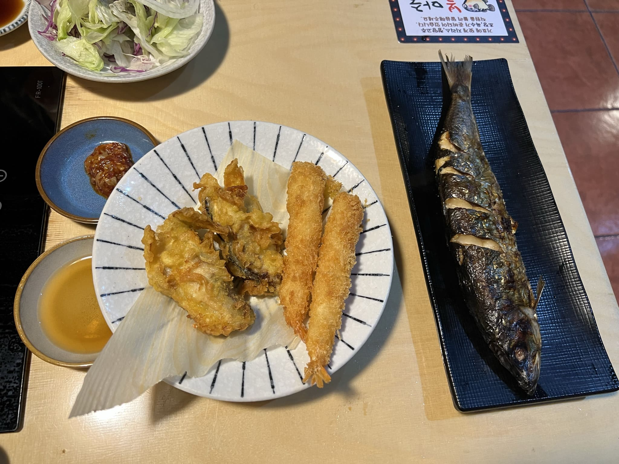 짭짤하게 잘 구워진 꽁치구이는 회집에서 반찬으로 많이 주죠. 이집에서도 제공해 줬는데 무난하게 잘 먹은 것 같습니다. 밥이랑 간장이랑 같이 먹으면 참 좋을 것 같더라고요. 모둠 튀김의 구성은 새우튀김과 복 튀김입니다. 새우튀김은 흔히 맛볼 수 있는 녀석이었고, 복튀김은 바삭한 튀김옷을 뚫고 가면 보슬보슬한 속살을 느낄 수 있는 튀김이었습니다. 바삭한 껍질뒤에 숨은 부드러운 속살이 고진감래라는 한자성어가 생각나네요. (사실 바삭한 튀김을 좋아해 감진감래라고 생각합니다.)