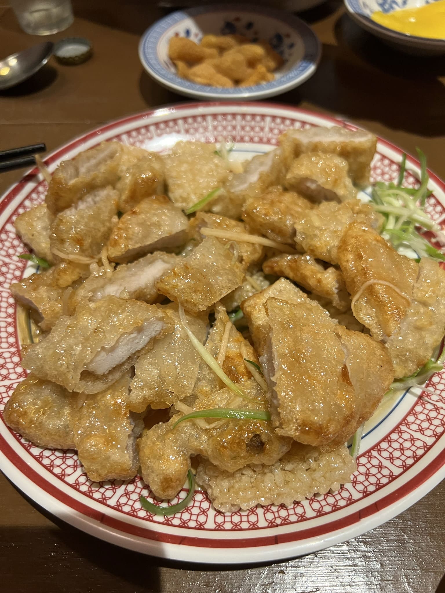 중식당이나 중식포차에 가면 단골로 시키는 꿔바로우입니다. 처음에 누룽지 꿔바로우라고 해서 누룽지맛 나는 고소한 반죽인 줄 알았는데 진짜 누룽지 튀김이랑 같이 먹는 꿔바로우였어요. 누룽지 튀김은 소스에 절여지면 눅눅하기 마련인데 바삭하니 맛있게 먹은 거 같아요.