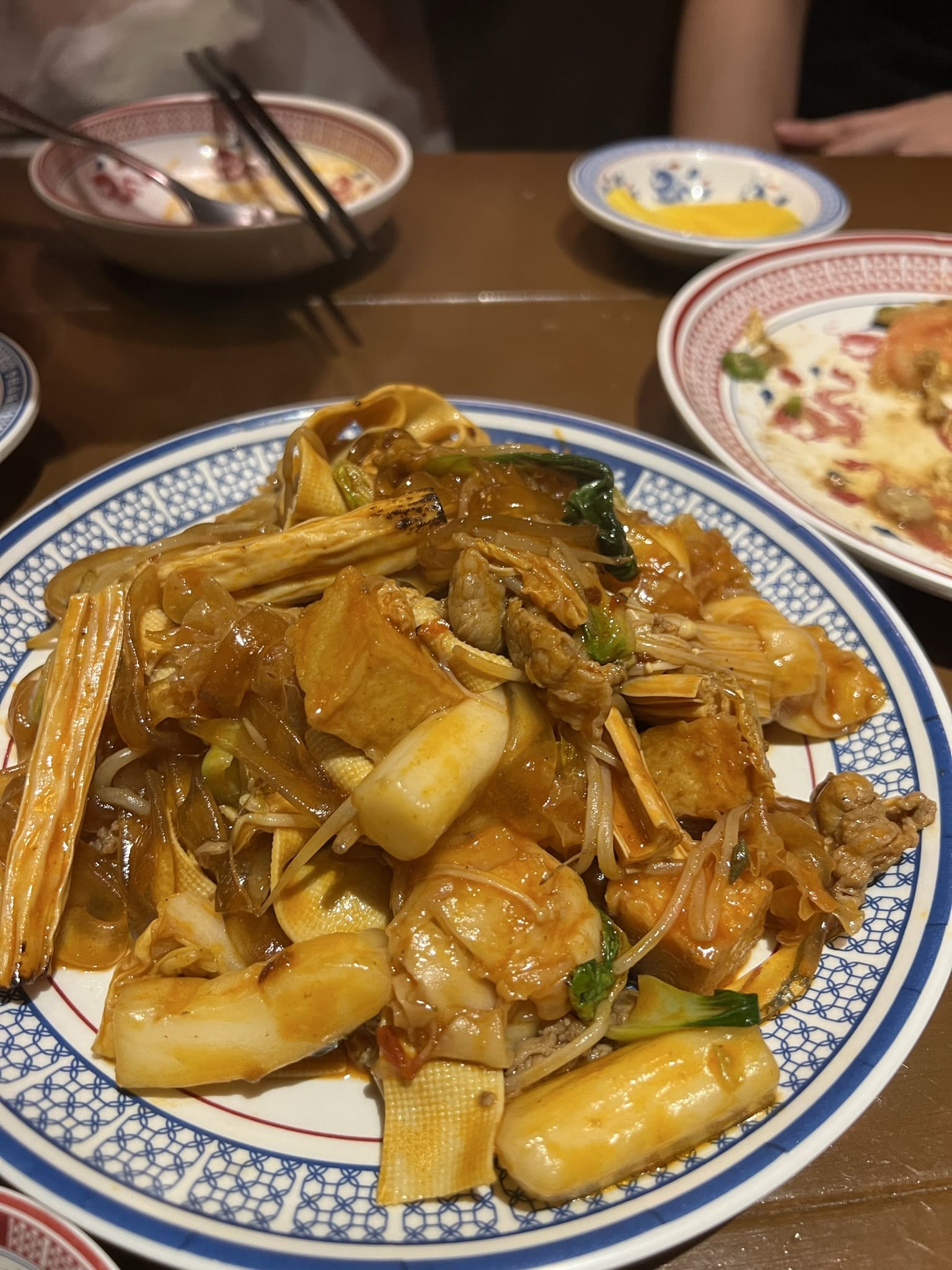 마라 소스에 온갖 재료를 볶아서 조리한 마라 샹궈입니다. 마라탕으로 시작해 마라 샹궈로 끝난다는 말이 있는데요. 마라 자체의 맛을 잘 느끼기에는 샹궈(볶음)이 더 좋다는 게 개인적인 취향입니다. 여느 마라 집처럼 재료를 선택하는 게 아니라 어느 정도 미리 구성된 재료로 볶아주는 마라 샹궈이지만 부담스럽지 않고 골고루 잘 먹을 수 있는 메뉴였습니다.