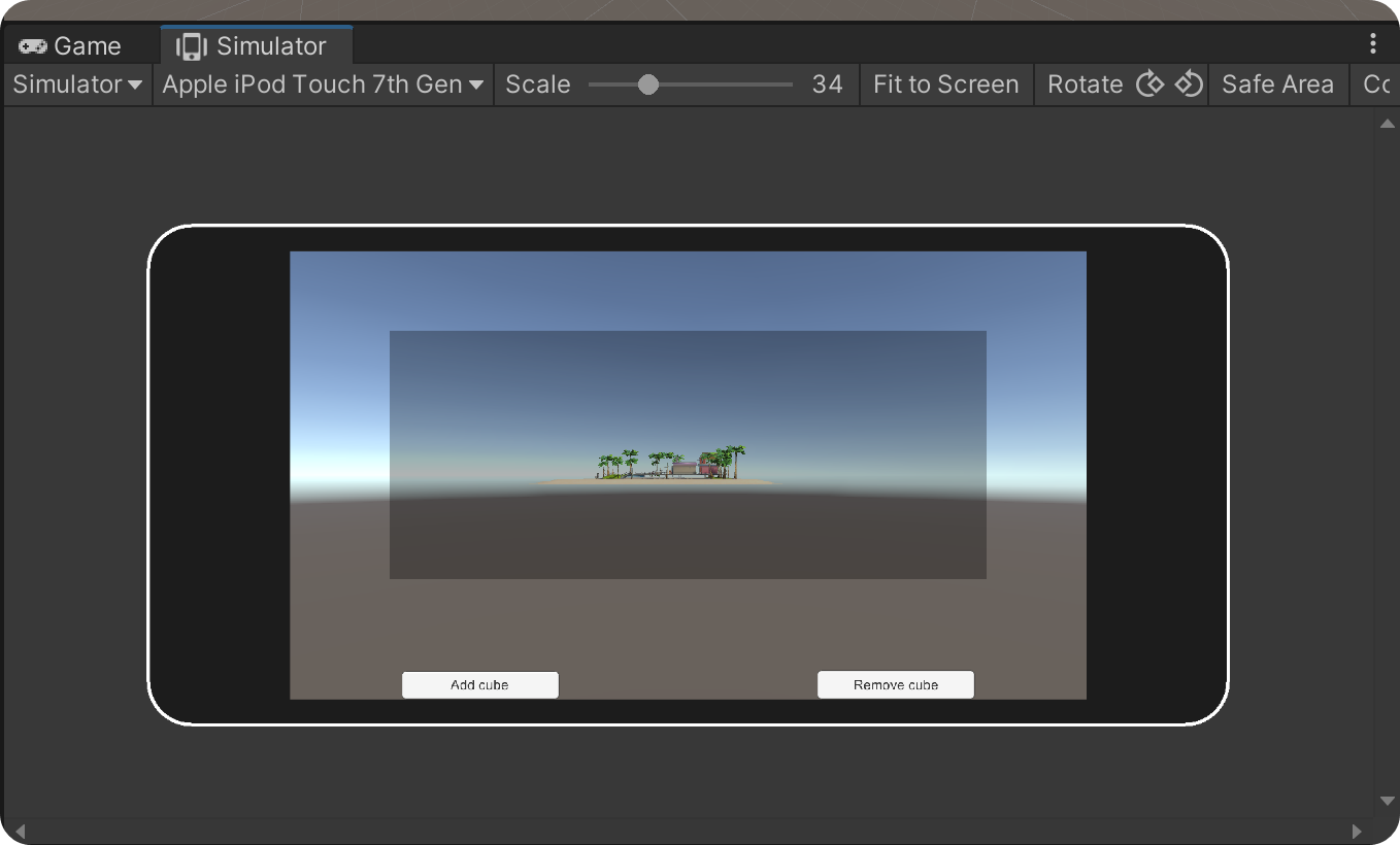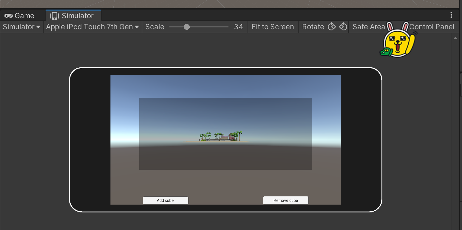 창 상단의 Safe Area를 활성화 하면, 기기별 Safe Area를 확인 가능합니다. Screen.safeArea 통해 영역도 받아 올 수 있고 이와 같은 영역을 시각적으로 표현해 주니 해상도 대응과 Notch대응에도 유용하게 이용할 수 있었습니다.