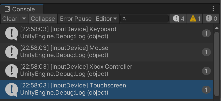 InputSystem package를 사용하고 있다면 이처럼 Device Simulator를 활성화 했을때, 사용 가능한 Input Device에 TochScreen이 추가된 것을 확인할 수 있습니다. 즉, 모바일기기의 입력을 터치로 입력받을 수 있다는 겁니다.