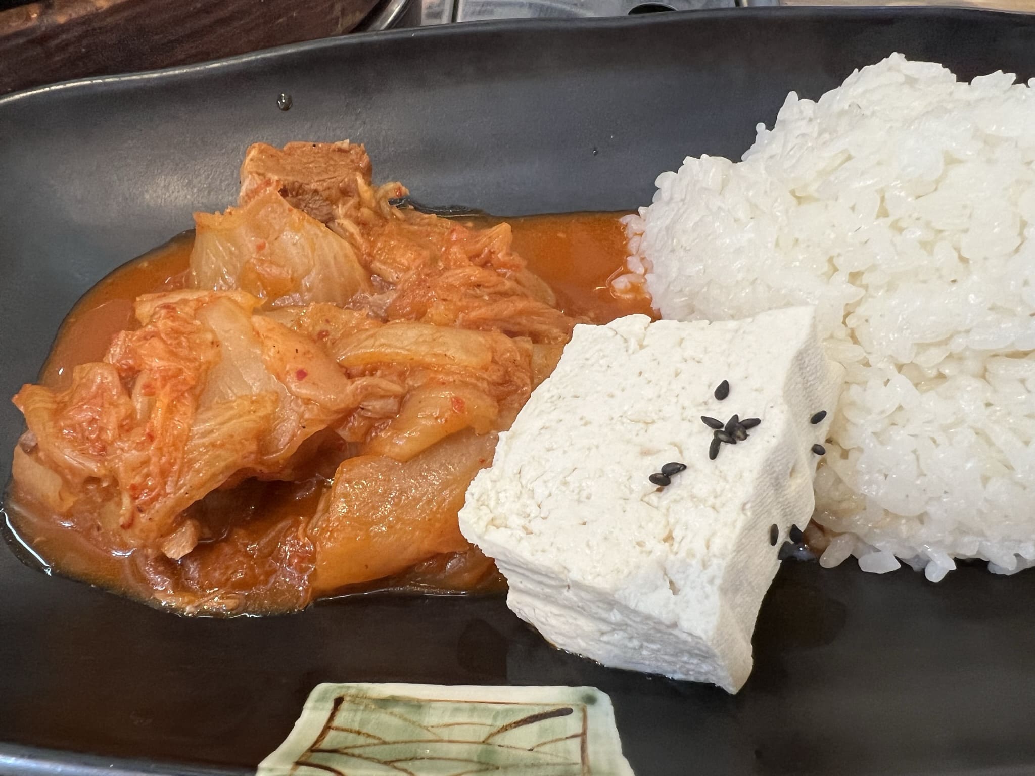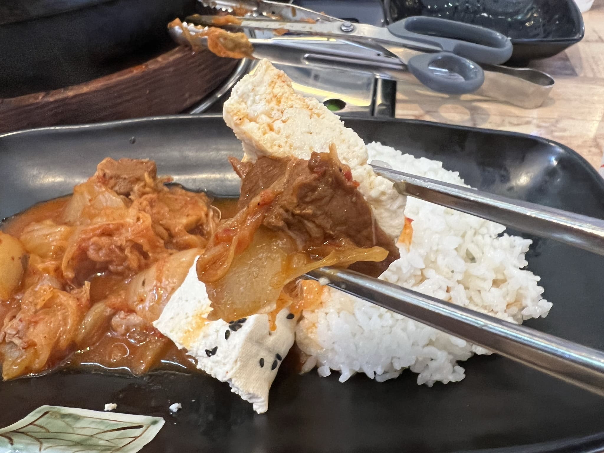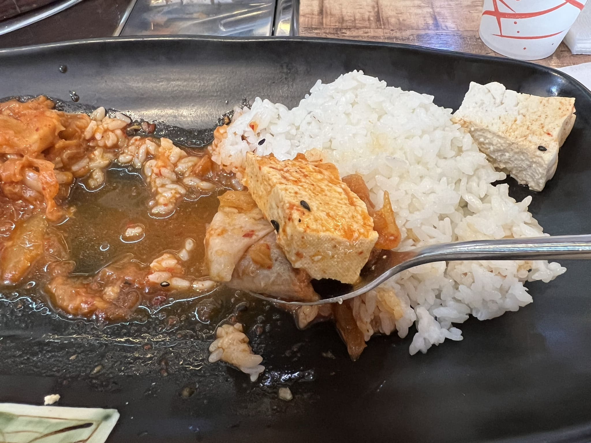 고기와 두부, 김치의 조합은 정말 환상의 궁합 아닌가요. 두부김치 생각도 나고요. 한 숟갈 한 숟갈이 너무 맛있었습니다. 먹다 보니 간이 확실히 센감이 있었는데, 그럴 때는 밥을 더 먹으면 되죠. 왜 그런 말 있잖아요. 라면을 끓이는데 물이 생각보다 많으면 라면을 더 넣고 끓이면 된다는...