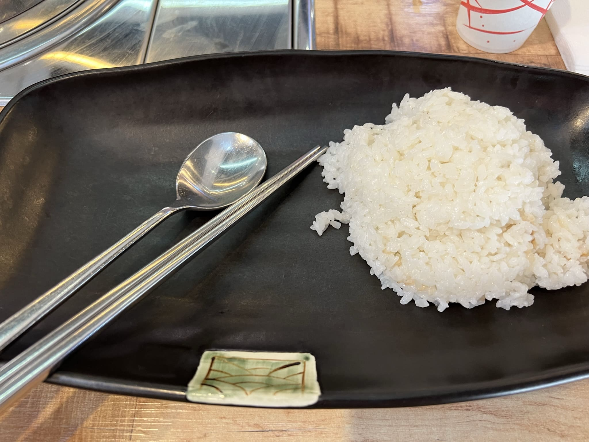 여긴 공기밥이 아니라, 이렇게 특이하게 널찍한 접시에 담아서 주시더라고요. 저는 집에서 혼밥을 할 때도 한 그릇 음식이나 저렇게 밥에 이것저것 담아 먹는 걸 좋아해요. 설거지도 줄어들고 차리는 수고도 덜고 해서 좋더라고요.