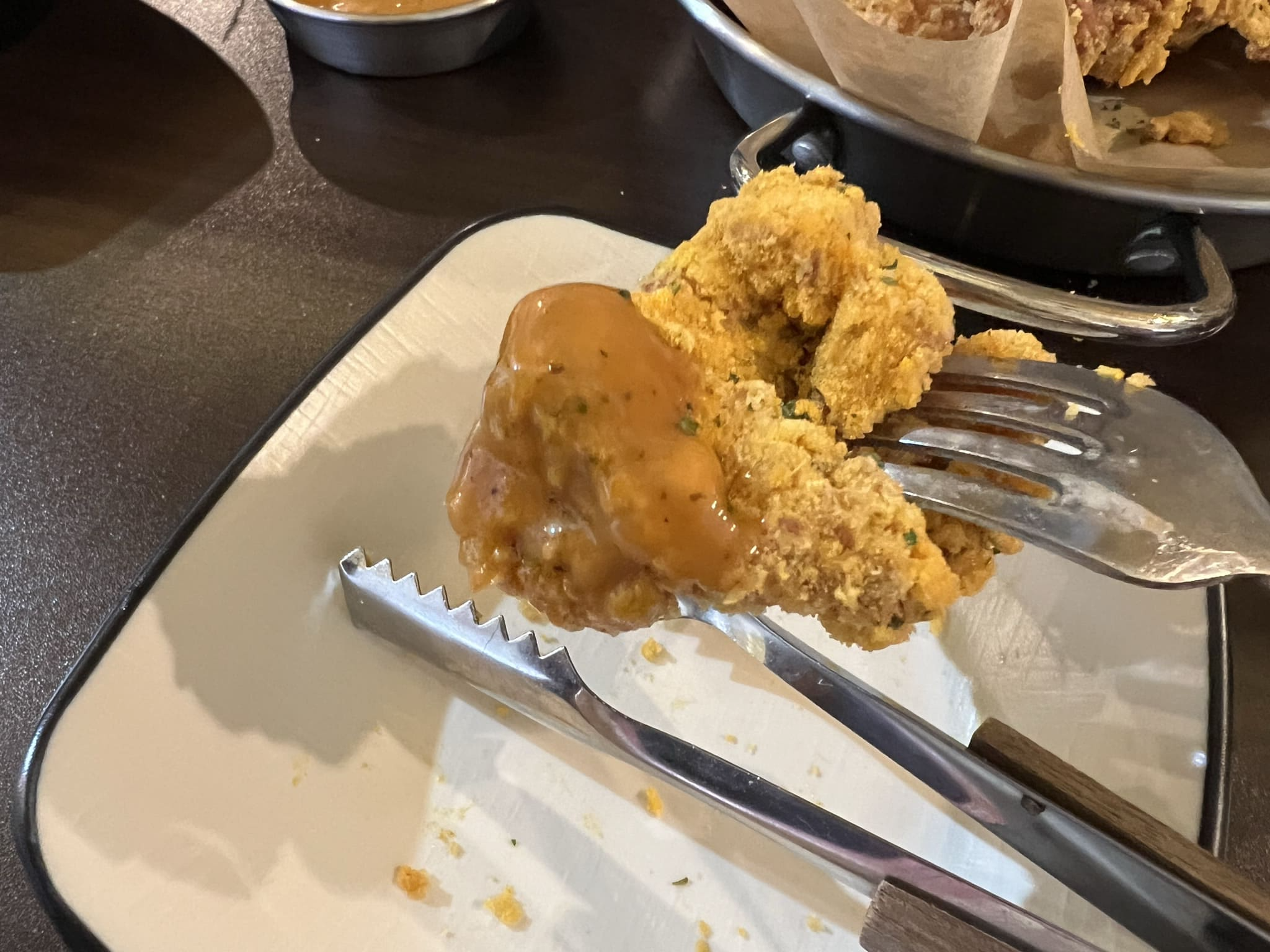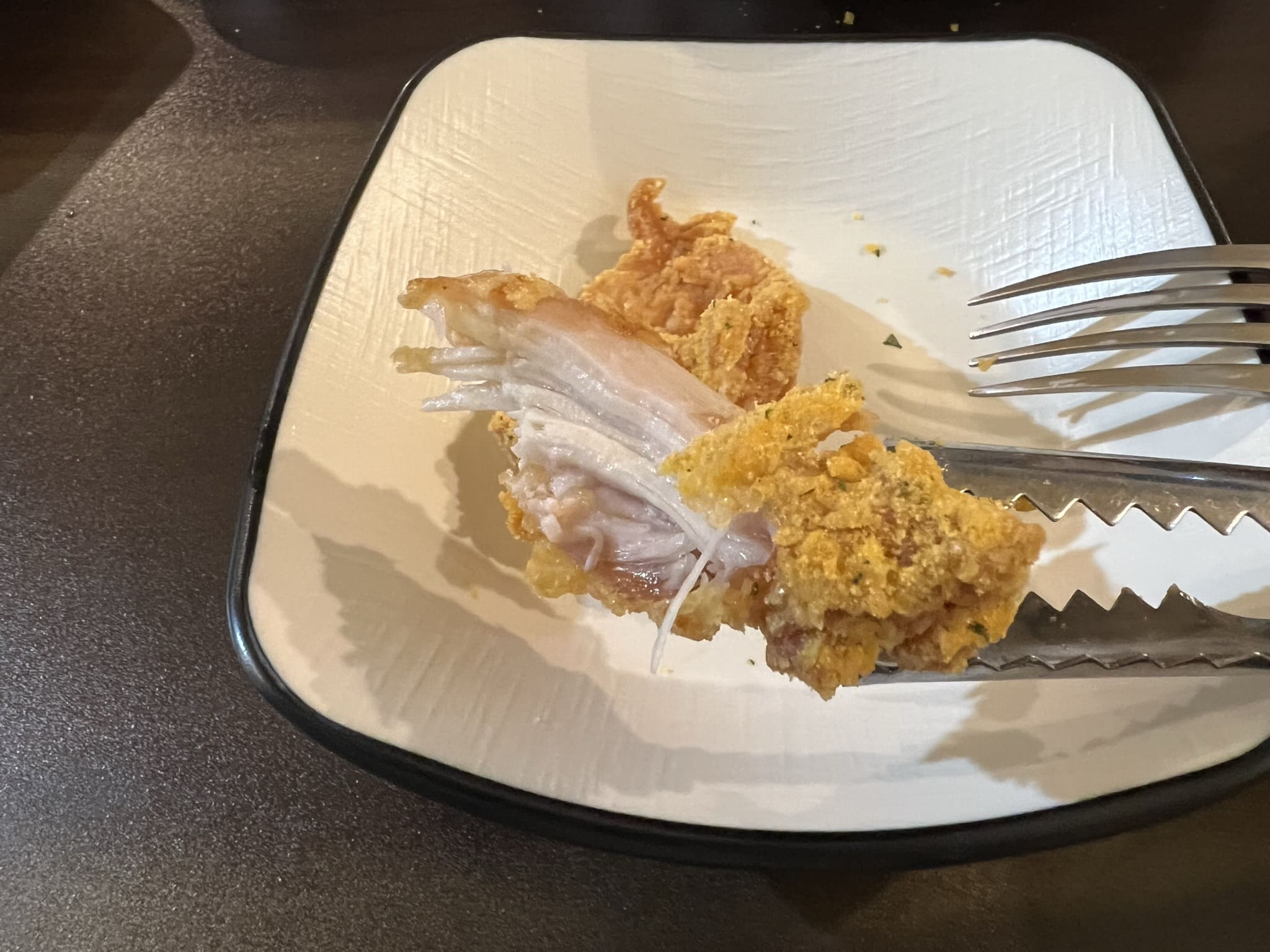 꽉 찬 속살과 파의 조화는, 지금도 입안을 맴도는 거 같아요. 순살 치킨자체도 굉장히 맛있었지만 이 녀석 정말 별미였습니다. 조리시간이 길고, 처음 나올 때 꼬치 부분은 만지시지 않아야 해요. 굉장히 뜨겁거든요. 화상 입을지도 몰라요. 꼭 덜어서 빼드시길 바랍니다. 꼬치째로 잡고 뜯으시면... 좋겠지만 어후...