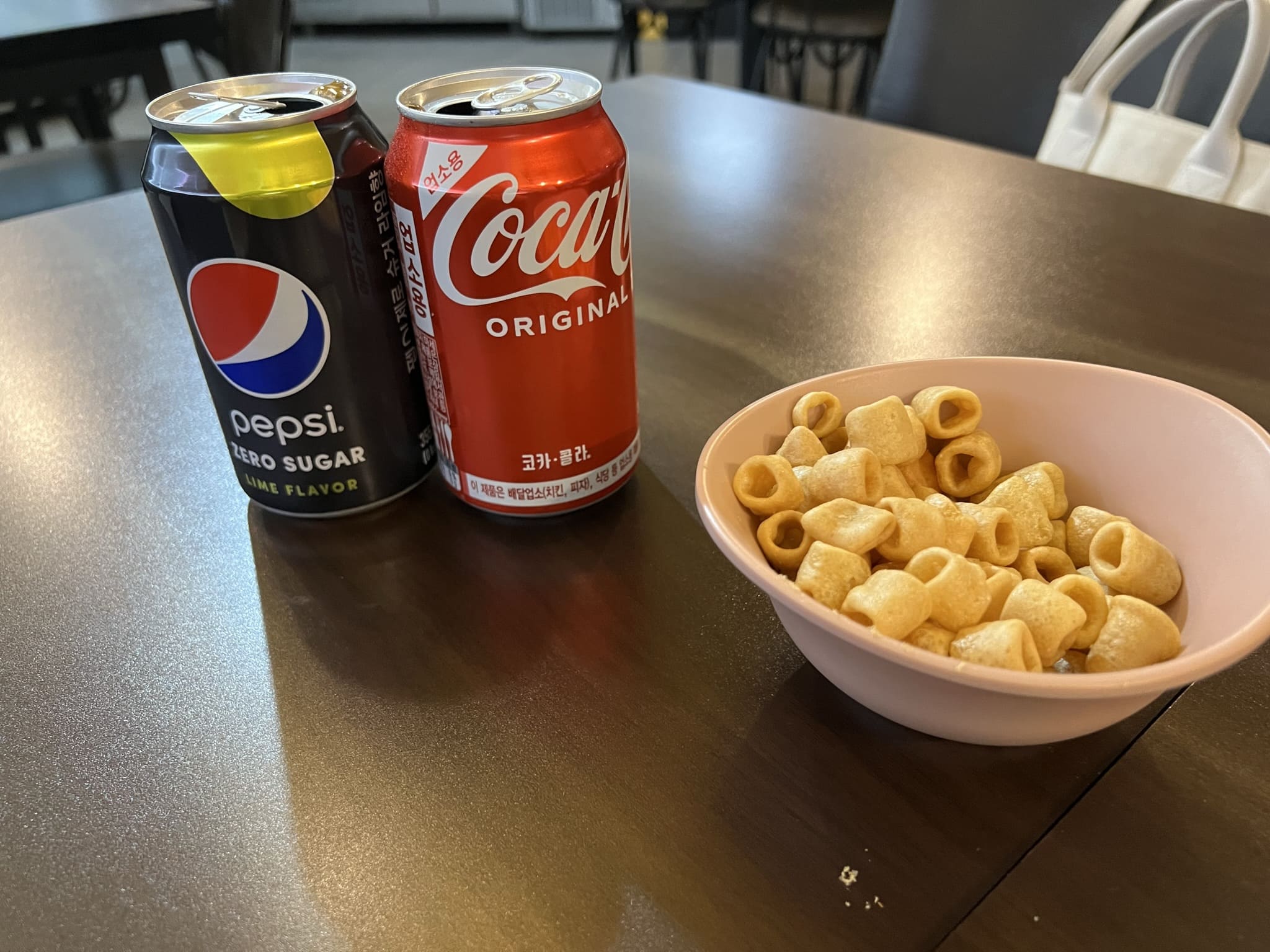 치킨과 환상의 짝꿍인 무와 샐러드도 함께 내어 주시고요. 원래 생맥주 같은걸 마셔줘야 했지만, 운전을 해야 해서 콜라를 시켜 보았습니다. 탄산은 못 참죠.