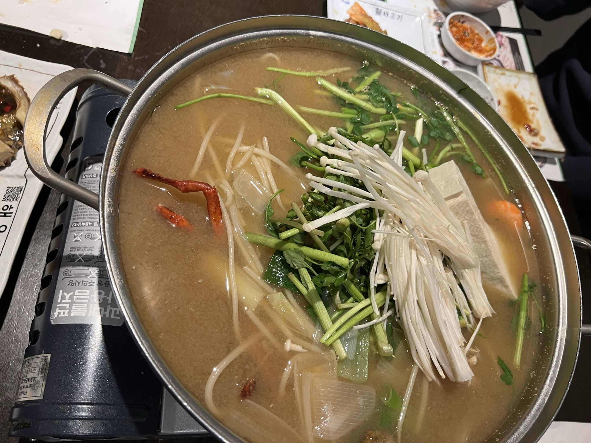 랍스터 회를 다 먹으면 머리와 부속물을 가져가셔서 끓여 주는 매운탕입니다. 사실 빨간 국물의 매운탕을 생각했던 저로서는 실망스러웠지만, 맛은 있었습니다.