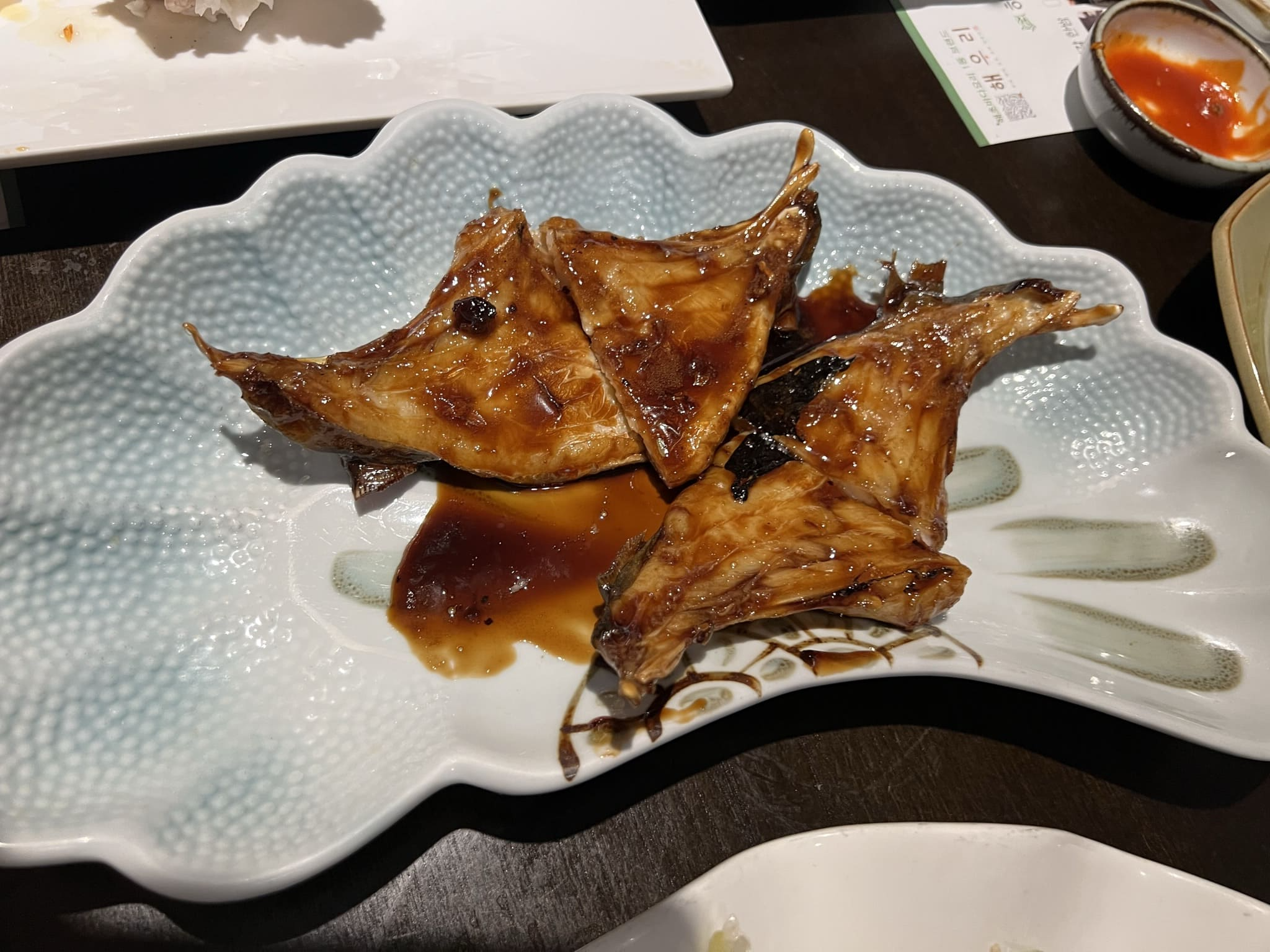 보리 굴비와 도미찜, 가자미 구이등 다양한 요리류가 나왔습니다. 미처 사진에 담지 못했던 것들도 있는데 순서대로 적절한 시기에 나오는 요리들을 즐기니 어느새 바가 부르더라고요.