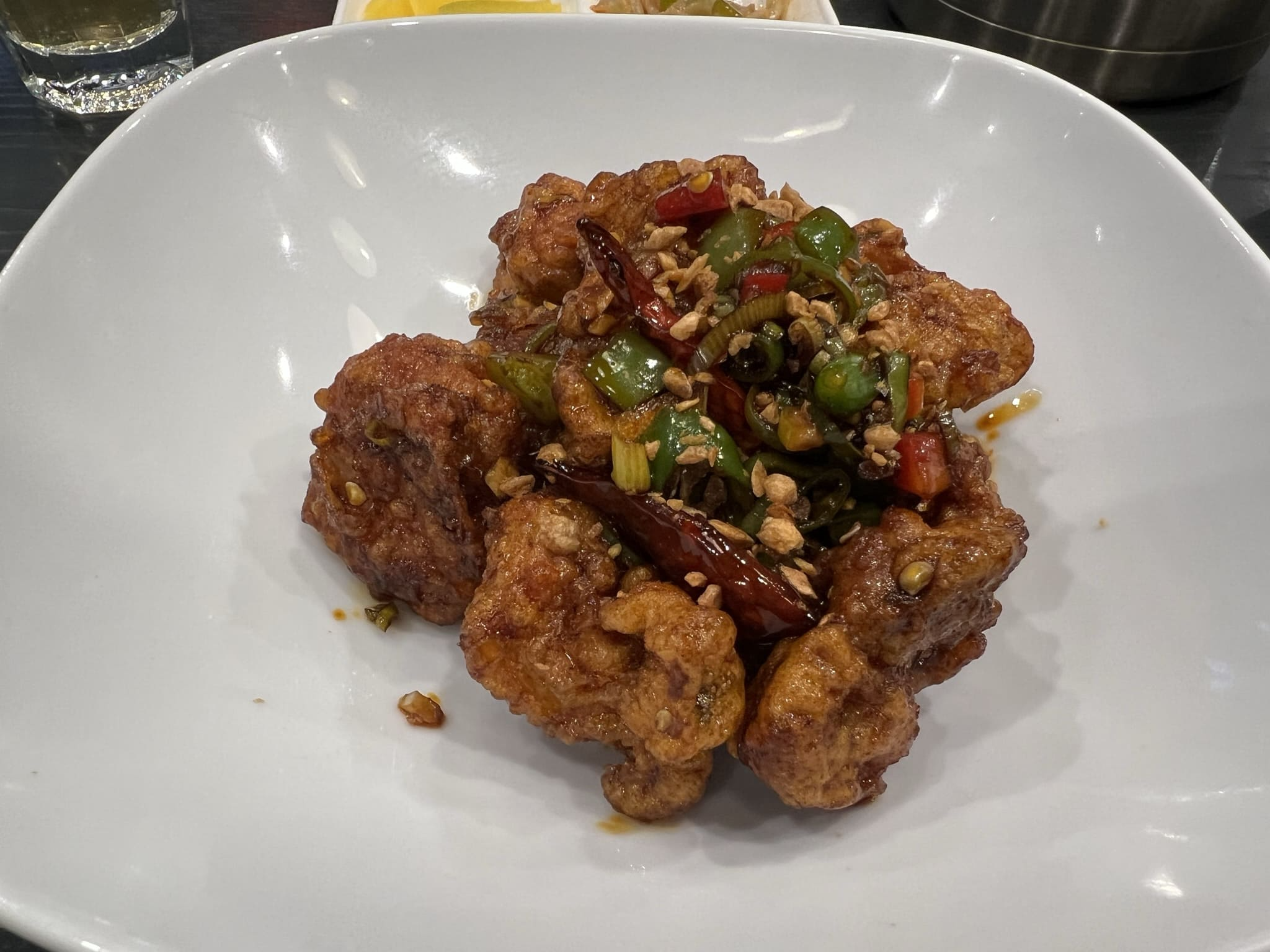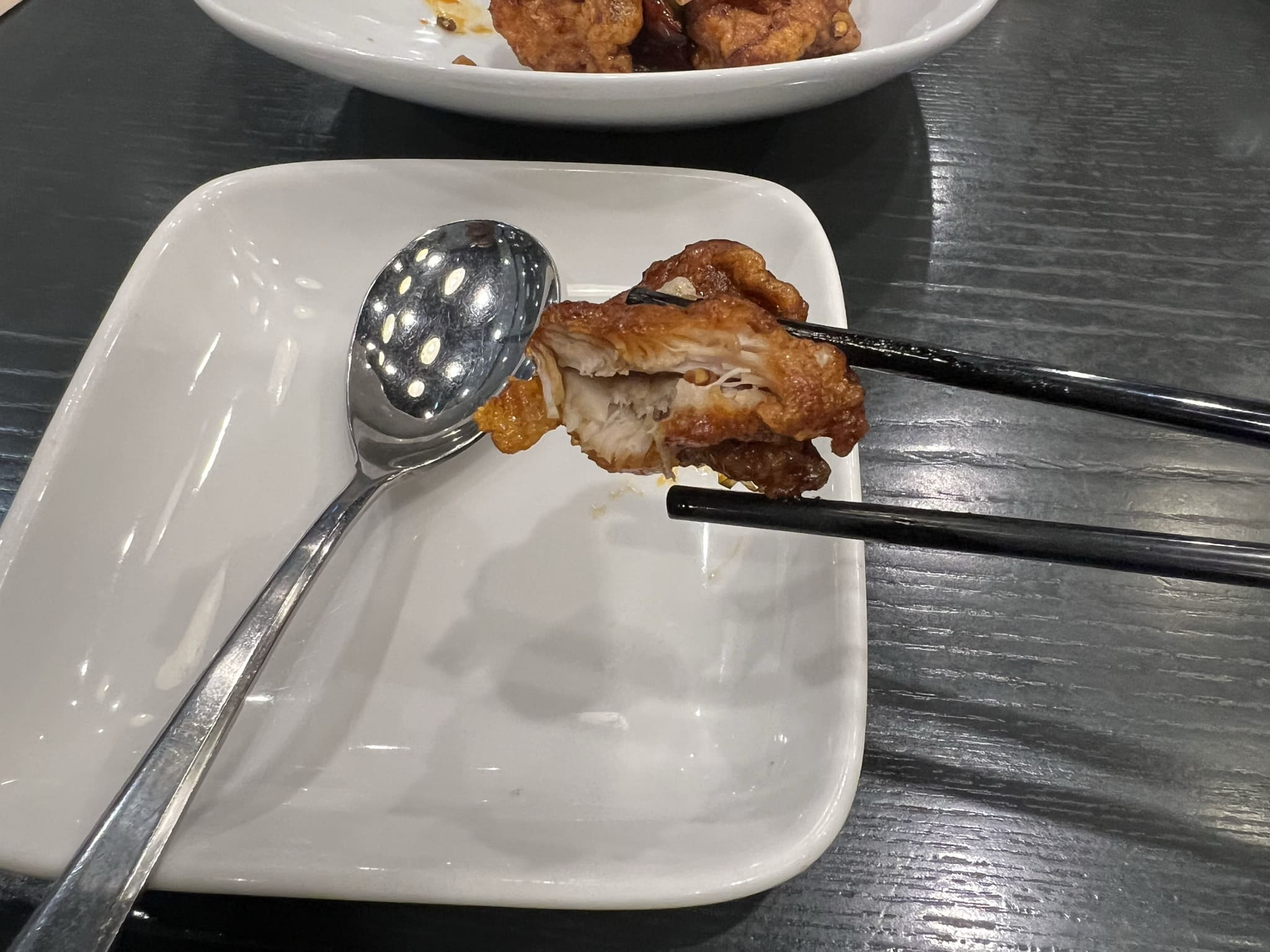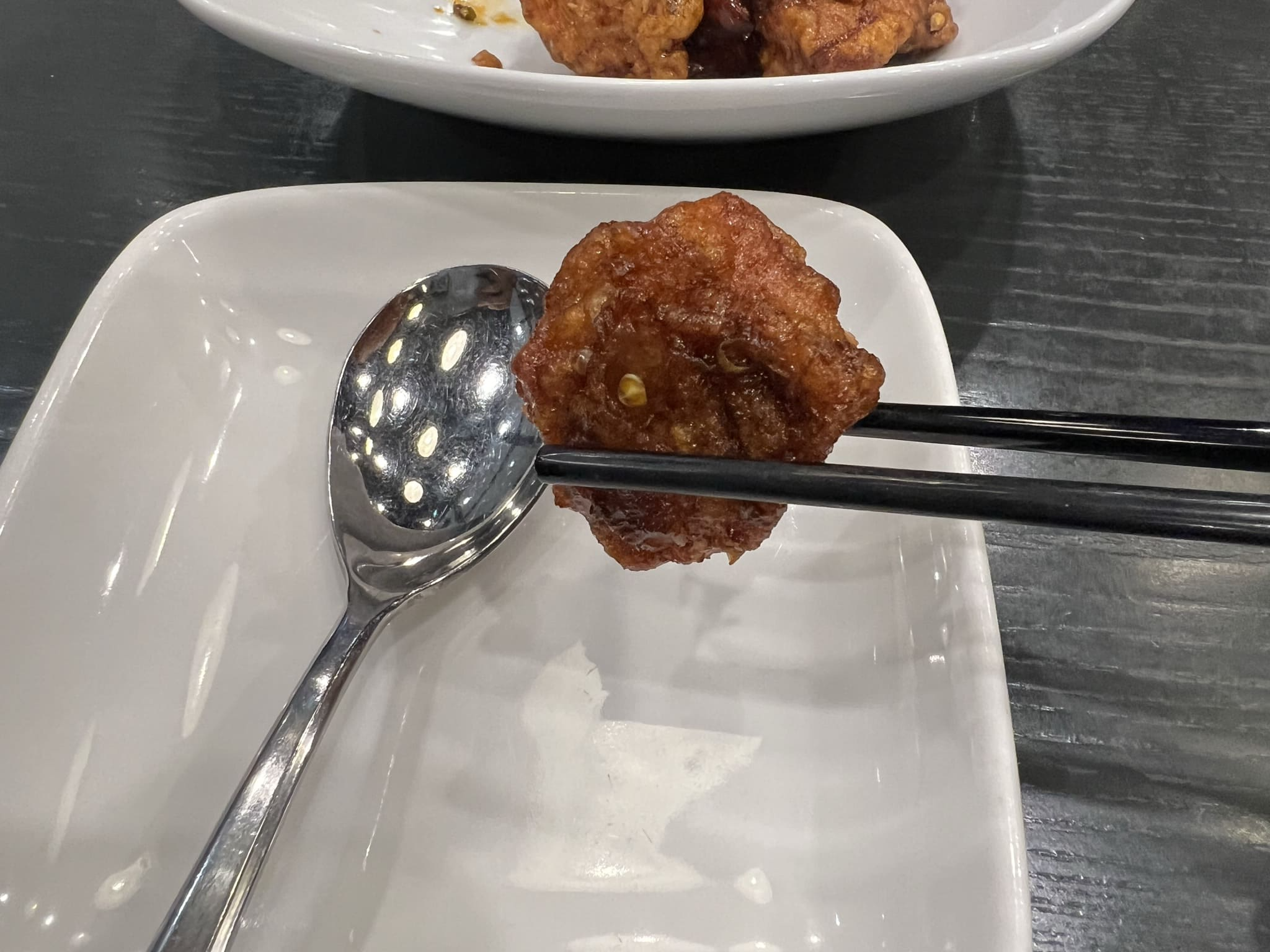 짬뽕을 한젓가락 두 젓가락 먹다 보니 런치세트의 요리 구성품인 깐풍기가 나왔습니다. 눅눅하지 않은 튀김에 고추기름과 고추로 매콤한 맛을 입혀줘서 그런가 매콤한 향이 코를 자극하더라고요.