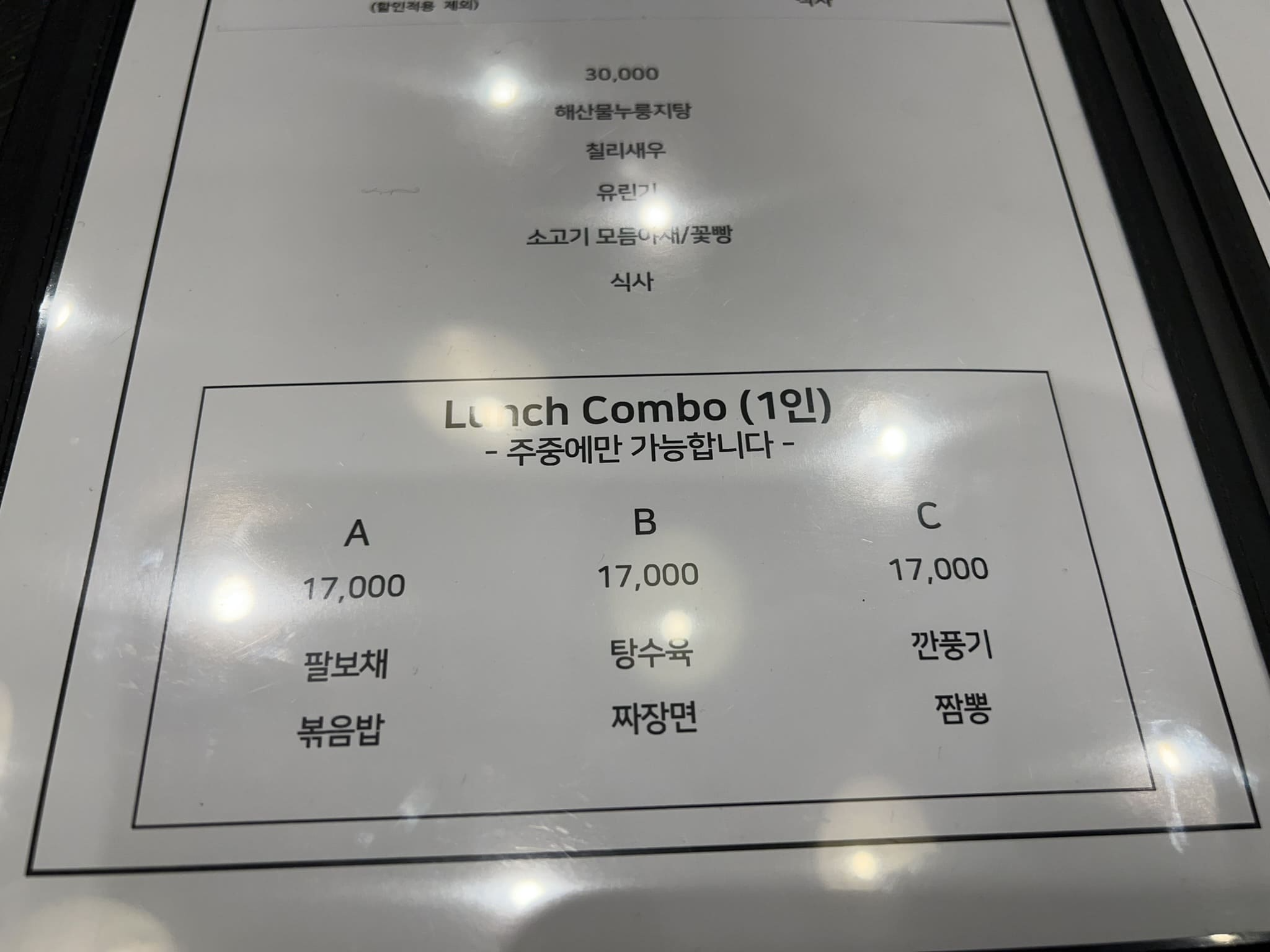 마침 런치메뉴로 세트로 파는 구성이 있더군요. 그래서 전 깐풍기+짬뽕 조합을 시켰습니다. 자장 냄새에 이끌렸지만 짬뽕이 먹고 싶더군요. 마침 전날에 술도 마셔 해장이 필요하기도 했습니다...
