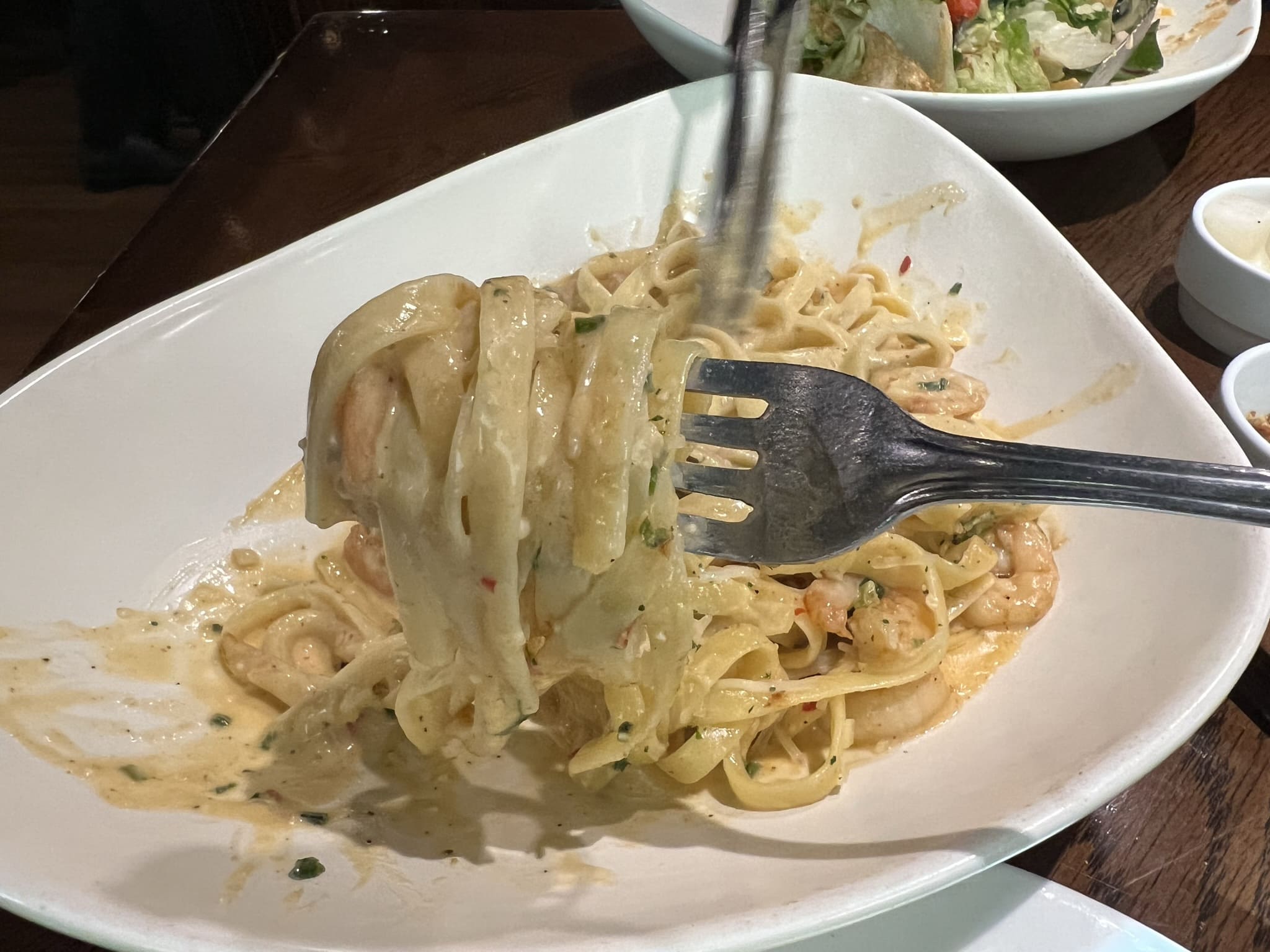 아웃백에서 투움바 파스타가 가장 인기가 많은 파스타라고 하죠? 저도 아웃백에서 제일 좋아하는 파스타 메뉴입니다. 전반적으로 꾸덕한 재질을 좋아하는 거 같습니다. 소스는 더 받을 수 있다고 하니, 혹시 너무 굳거나 하면 추가로 요청해 보아요.