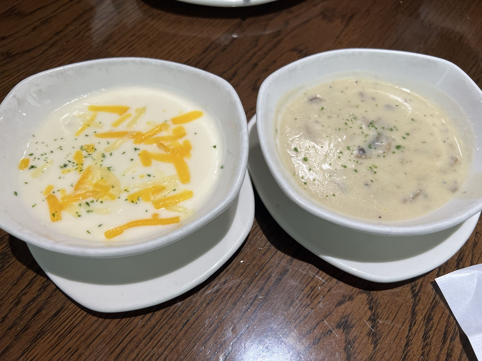 애피타이져인 홈메이드 수프들과 치폴레 샐러드입니다. 무난하게 잘 먹은 거 같아요. 스푸는 바로 먹었고 샐러드는 뒤에 메뉴들과 함께 먹기 좋은 거 같아요. 느끼한 것들이 있을 수 있으니 입가심으로도 좋았던 거 같아요.