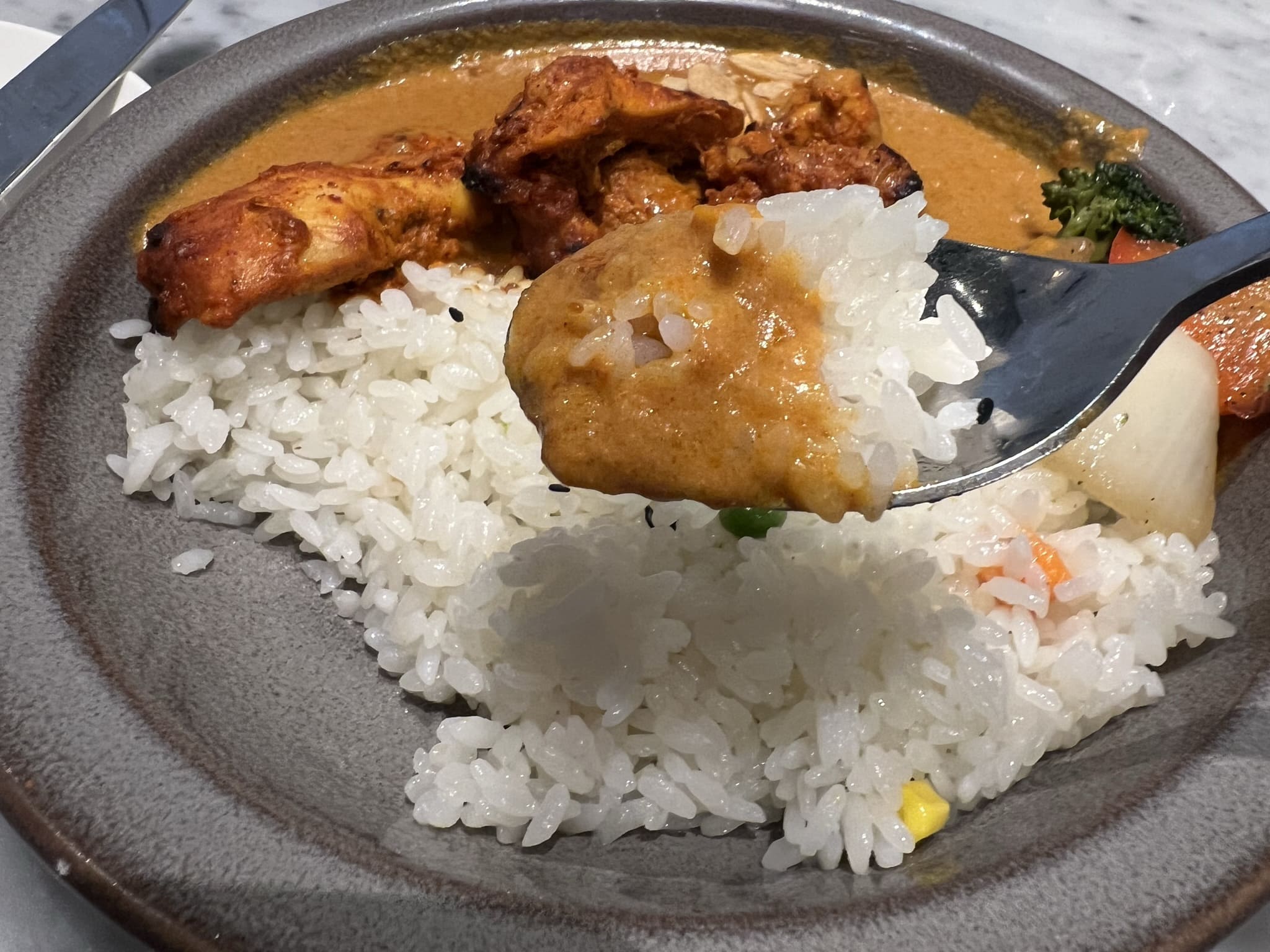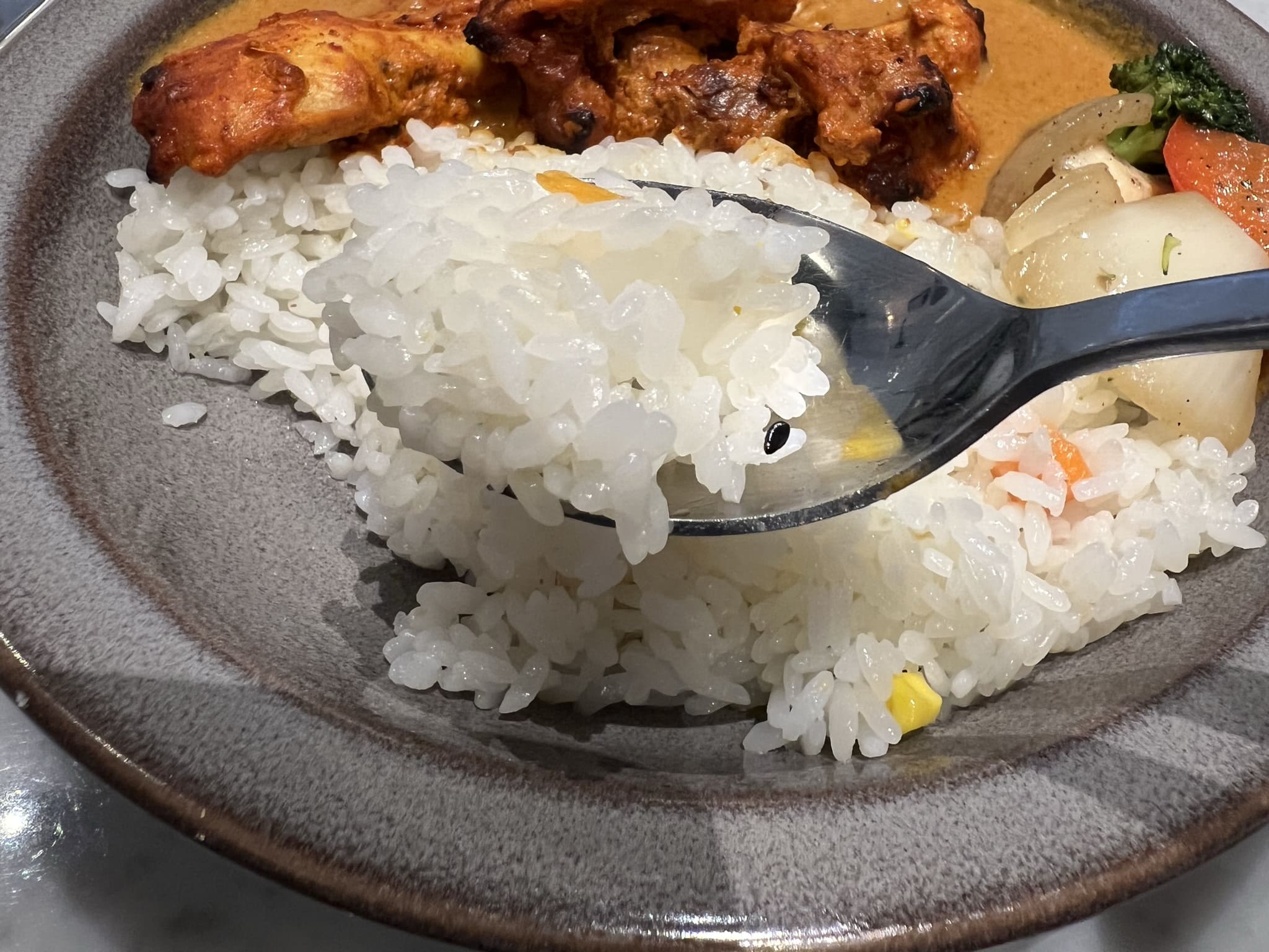 밥도 일반 흰밥이 아닌 조미가된 밥인 거 같아요. 사실 전 커리만의 맛을 온전히 느낄 수 있는 순수한 흰밥을 좋아하는 편이지만 이런 밥도 나쁘지 않네요.