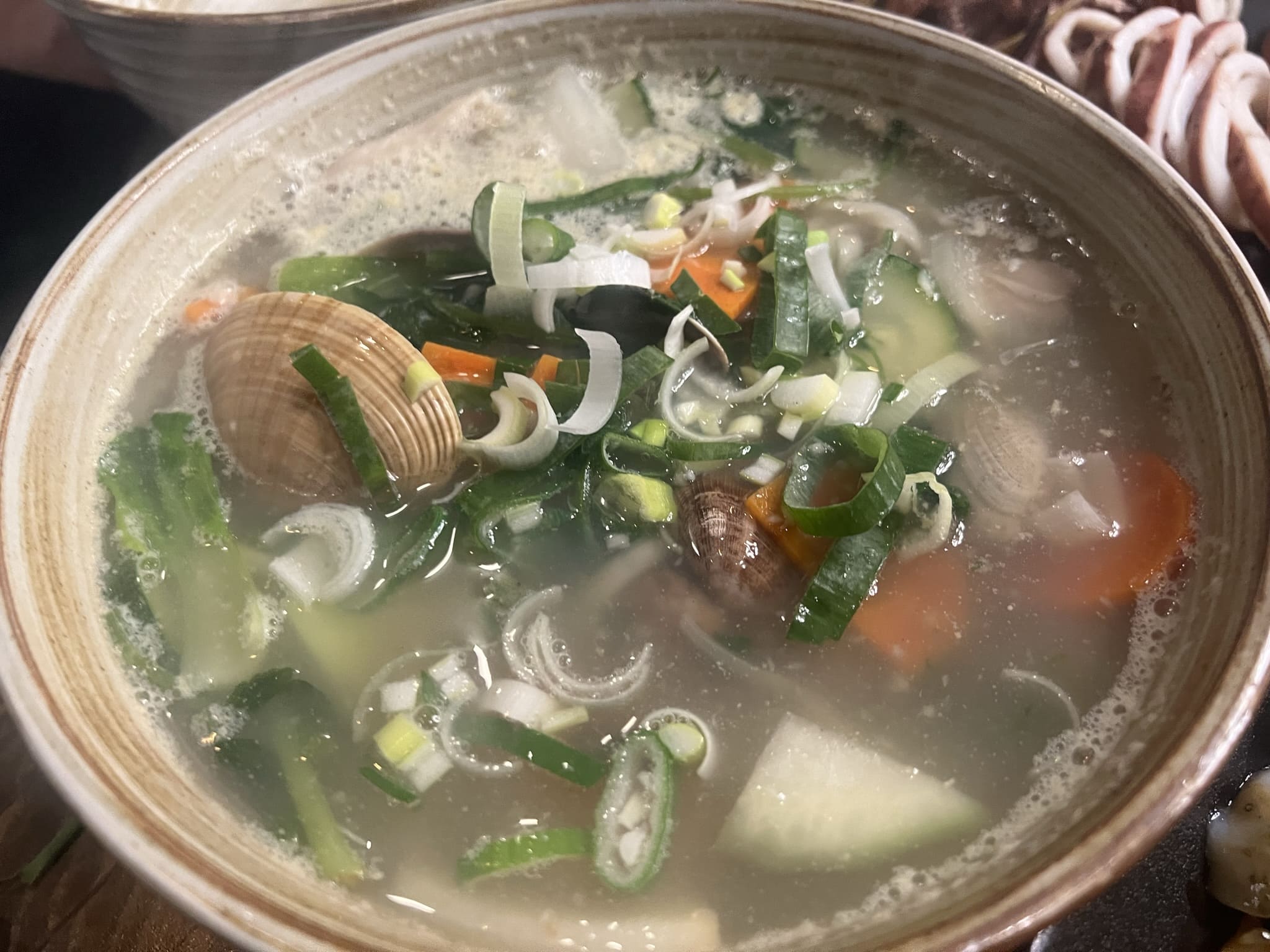 탄수화물을 챙겨주기 위해 시킨 해물칼국수입니다. 오이도 같은 곳에서 즐겼던 해물칼국수 비주얼이네요. 담백하니 아주 맛나게 섭취했습니다. 해물의 시원한 맛이 아주 잘 어울리는 조합이었습니다. 이렇게 오늘은 해물 해물하게 즐겨본 돼지런한 술자리였습니다. 모든 메뉴가 술을 뺄 수 없는 환상의 조합이었네요. 평일임에도 불구하고, 회식하러 온 직장인 무리가 아주 많은 것으로 보아, 이 근처의 명물이 아닌가 싶습니다.