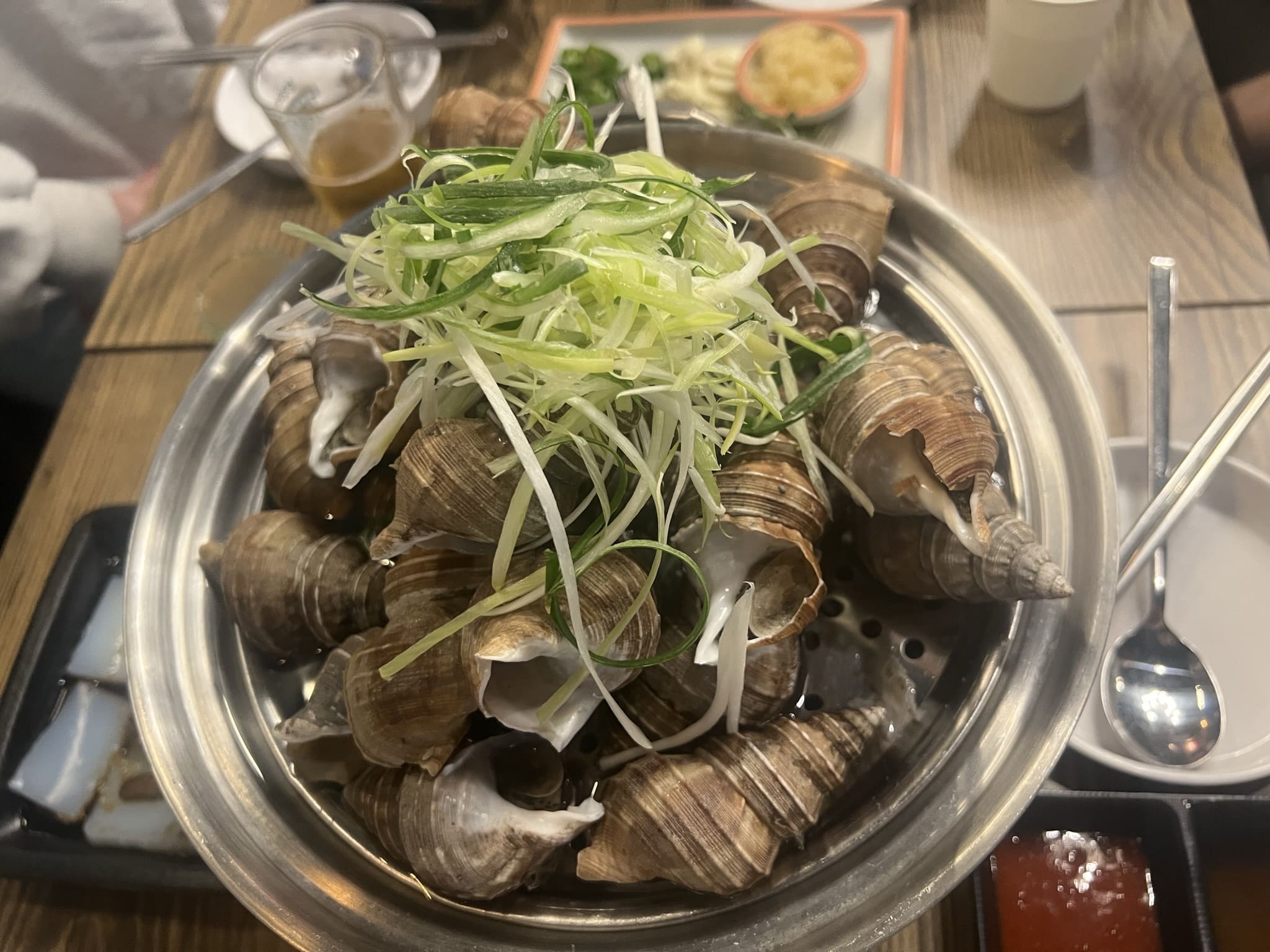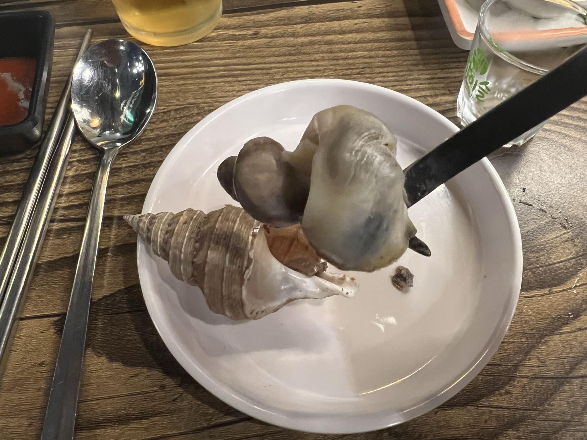 호프집을 가거나, 포장마차 같은 곳을 갈 때 골뱅이 안주를 종종 먹습니다. 주로 골뱅이 무침에 소면의 조합으로 나오는 안주요. 골뱅이 소면으로 많이 불리죠. 이런 골뱅이는 대부분 통조림 골뱅이로 나온다고 합니다. 통조림 골뱅이를 주로 접하던 저에게 껍데기까지 통째로 나오는 이 집의 골뱅이는 신선한 충격이었습니다.