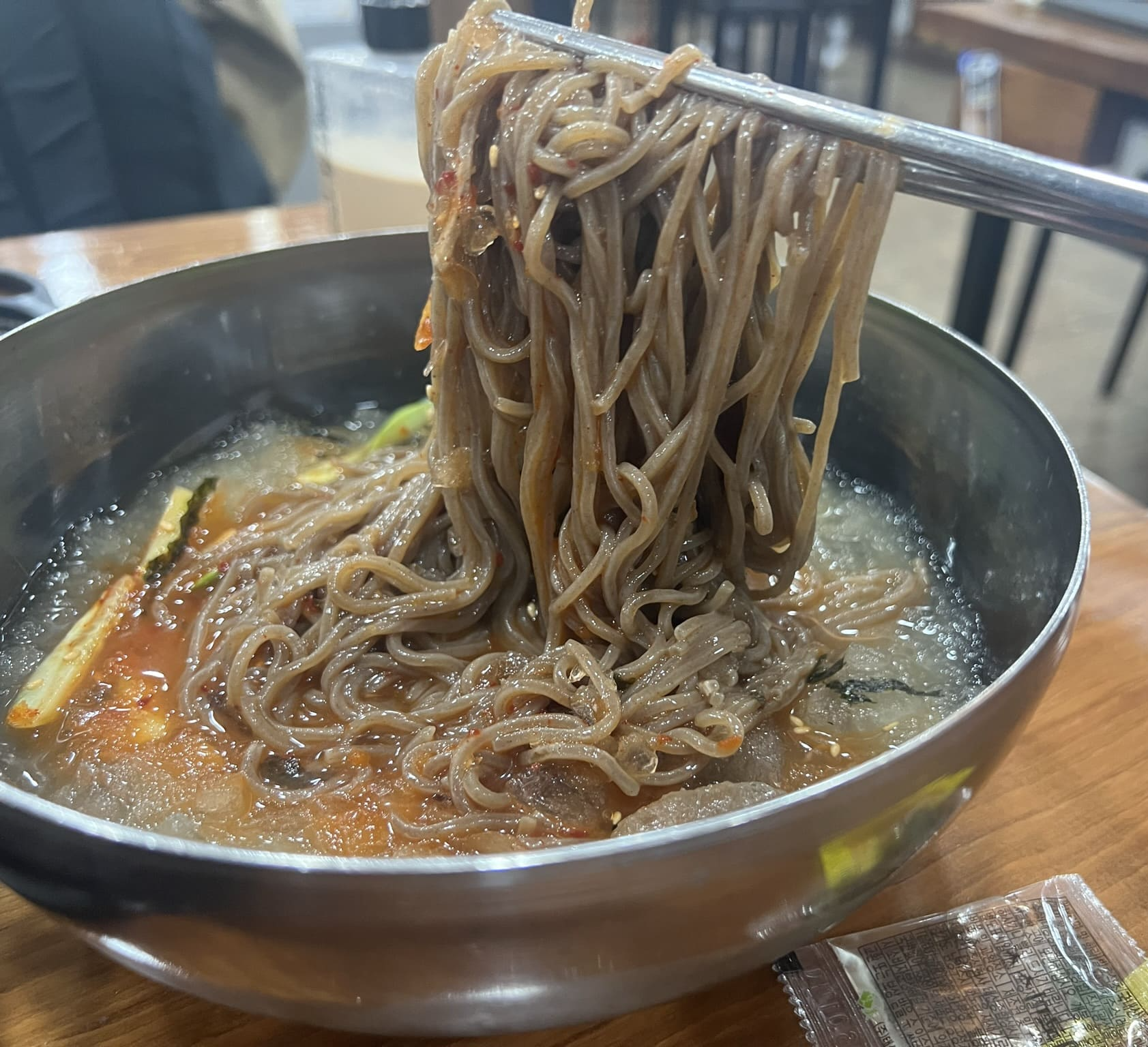 튜닝의 끝은 순정이라고, 같이주는 겨자나 식초등을 일절 넣지 않았습니다. 이 간 상태 그대로 먹기를 원했어요. 살얼음을 해치고 나오는 저 모습이 은하수를 해치고 나오는 철도 999를 보는 듯 했습니다. (모르는 분들도 계시겠죠, 추억의 만화...)