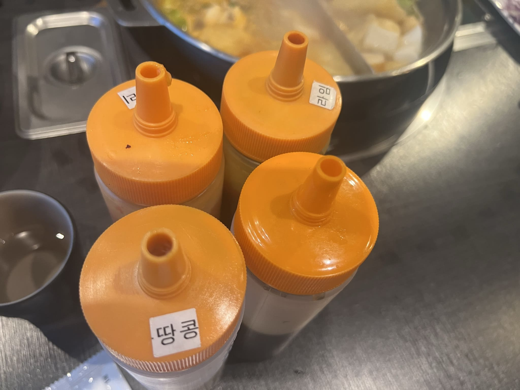 샤브샤브와 월남쌈에 곁들여 먹을 소스들입니다. 위에 4가지 소스를 제공해 주는데, 모든 소스가 다 잘 어울리고 좋았습니다.