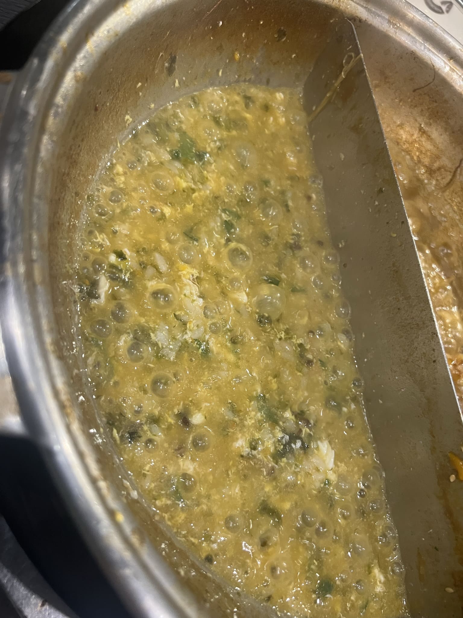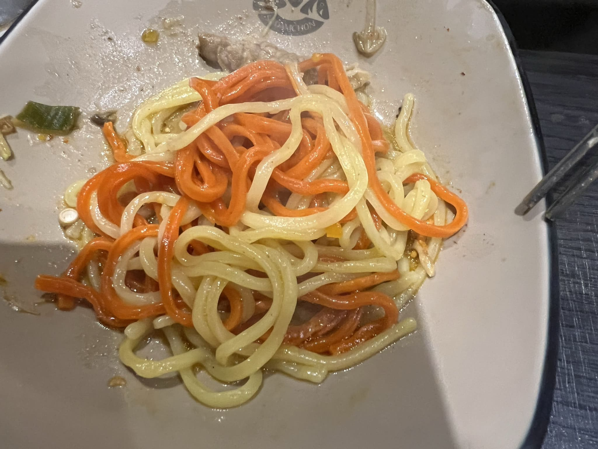 샤브샤브의 마무리는 칼국수와 죽이 아닐까요? 이렇게 오랫동안 끓인 육수의 맛이 잘 스며든 칼국수는 간간하니 마무리 음식으로 좋았습니다. 죽은 마지막으로 마무리를 하고 싶다고 요청하면 죽을 할 밥과 계란을 가져다주십니다. 원하는 육수 쪽에 끓여 먹어 마무리해 주었습니다.