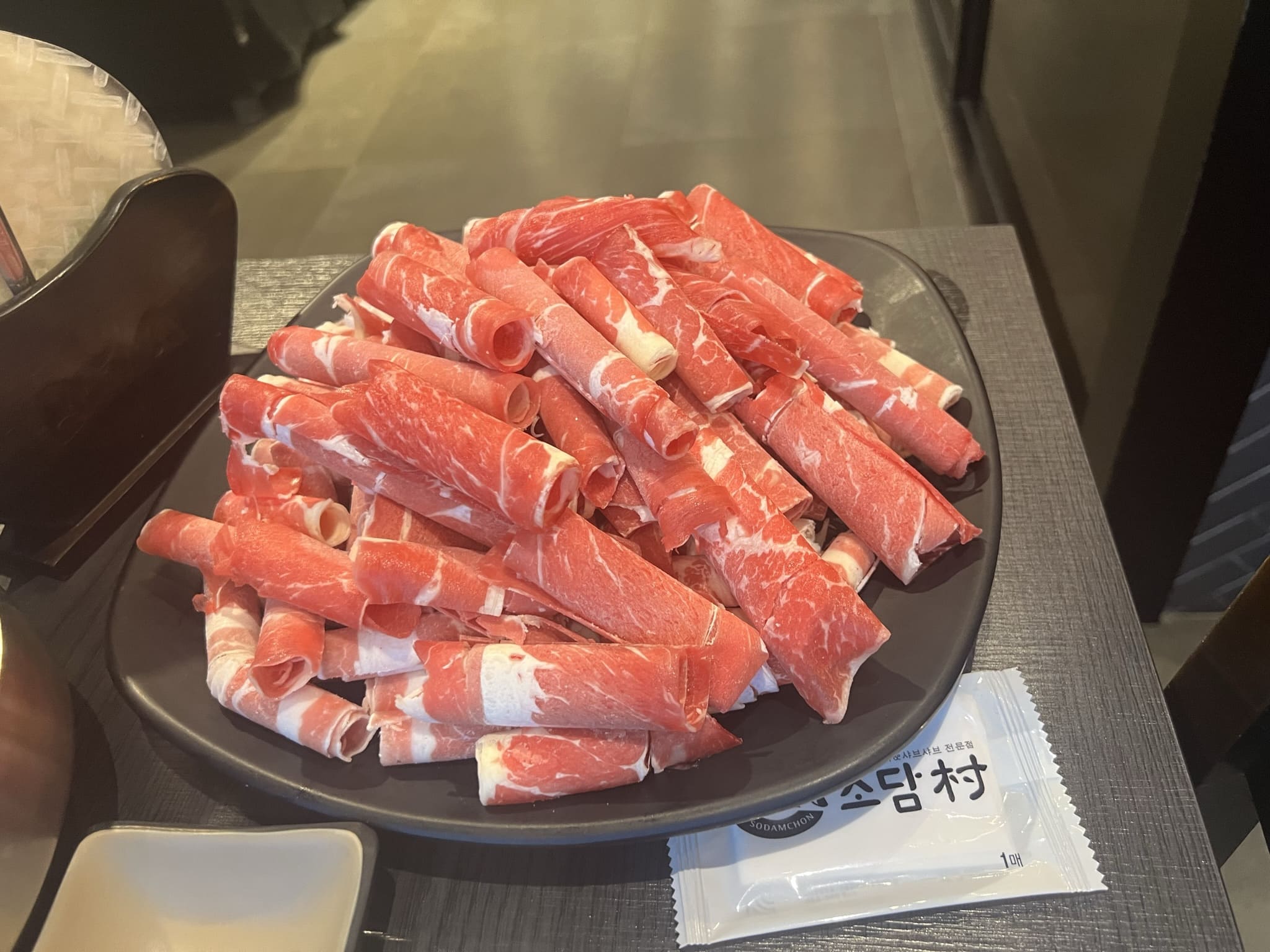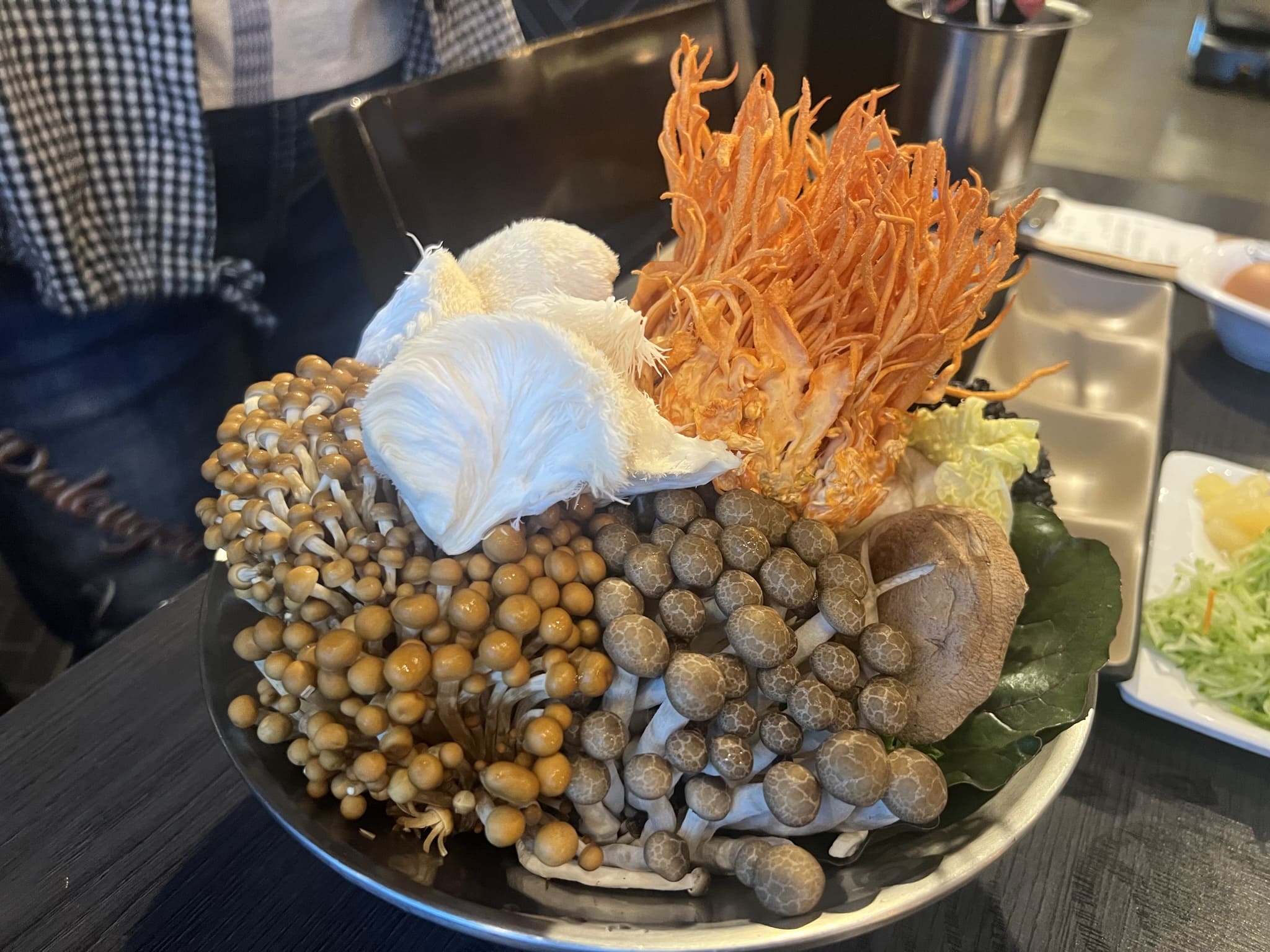 흔히 볼 수 없는 노루궁둥이 버섯이등이 포함된 모둠 버섯입니다. 이 버섯들도 샤브샤브로 익혀 먹으면 정말 맛있습니다. 고기와 버섯은 리필이 되지 않아 추가로 주문해야 한다고 합니다. 하지만 부담스럽지 않은 가격에 양도 푸짐하게 나와 적당히 잘 즐길 수 있습니다. 모자라다면 셀프바에 준비된 떡이나 만두, 유부, 어묵 같은 다른 샤브샤브 사리들을 같이 즐기시는 것도 좋은 방법일 것 같아요.