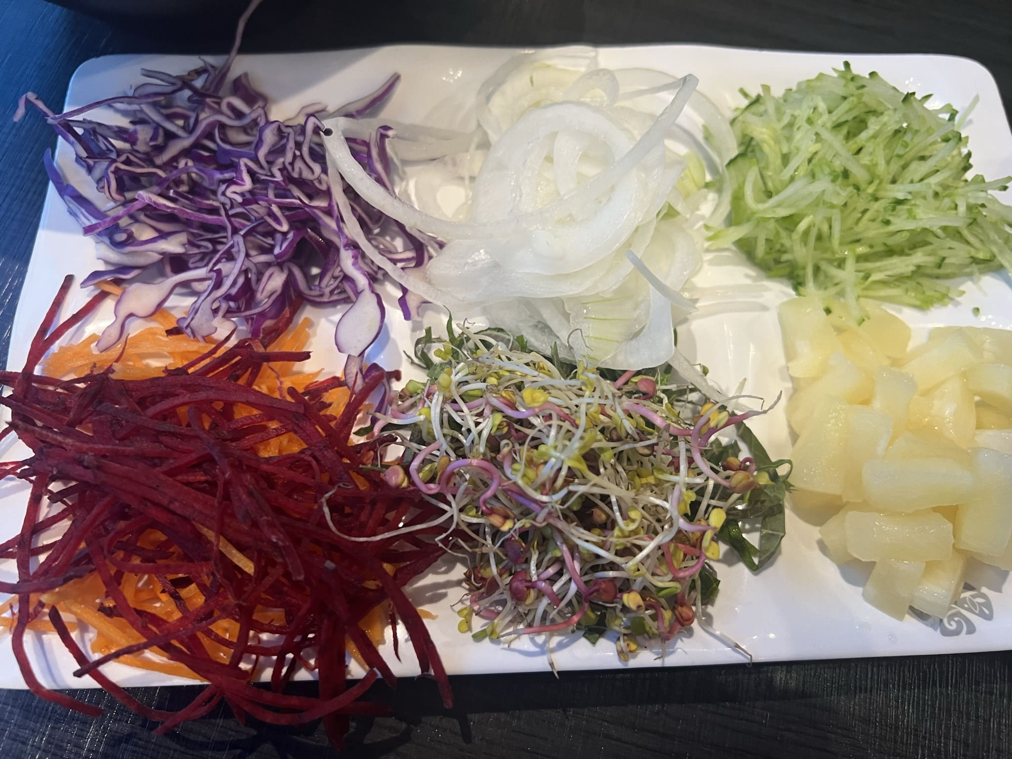 샤브샤브로 먹을 고기를 주문하고, 셀프바에 마련된 월남쌈 재료들을 가져와 봤습니다. 월남쌈 재료는 고기를 주문하면, 무한리필이니 원하는 만큼 원하는 구성으로 가져오시면 됩니다. 위에 보이는 재료들 말고도 다른 재료들도 많습니다.