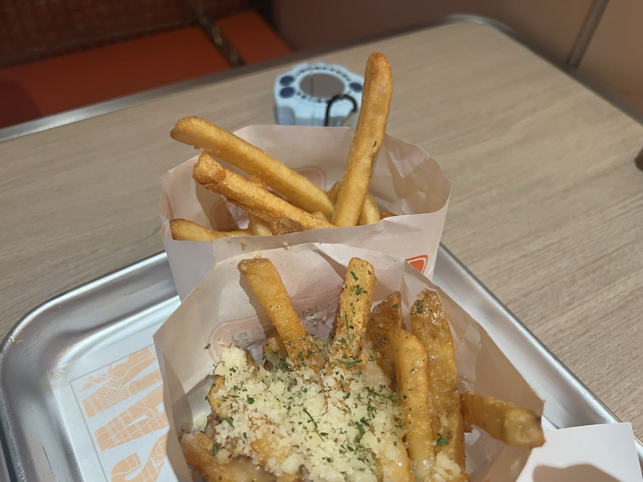 한국인이라면 마늘을 참을 수 없죠. 마늘 양념이 듬북 들어간 갈릭 프라이즈와, 오리지널 프렌치프라이입니다.